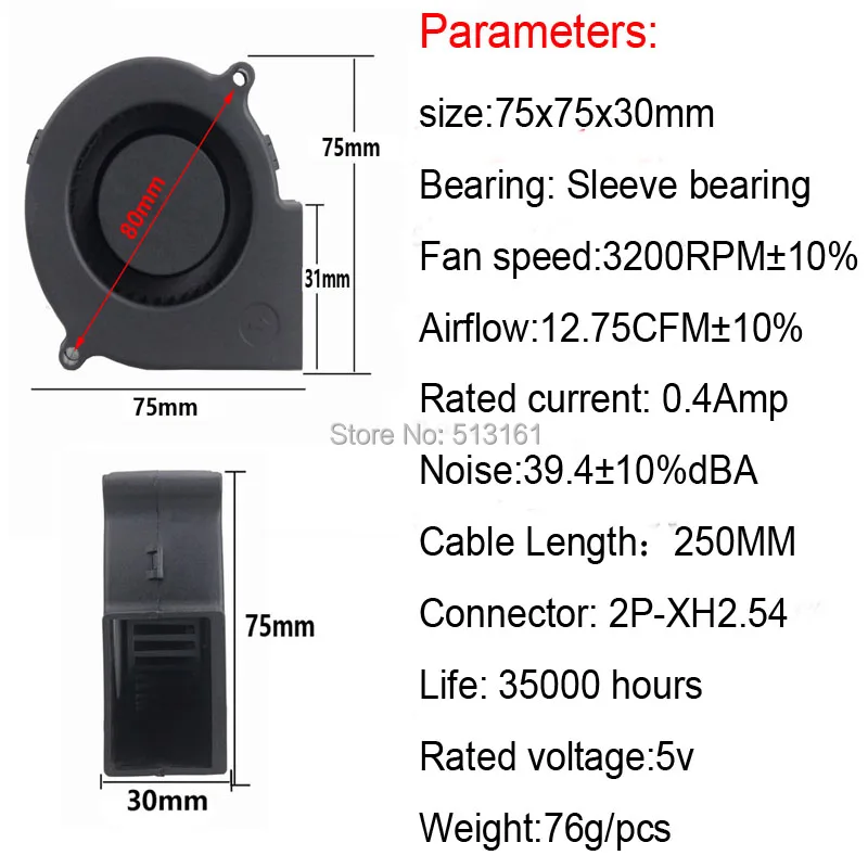 Comprar Gdstime-ventilador de soplado de CC, 75mm x 75mm x 30mm, 7,5 cm, 7530 75mm, Radial de ordenador, 5V