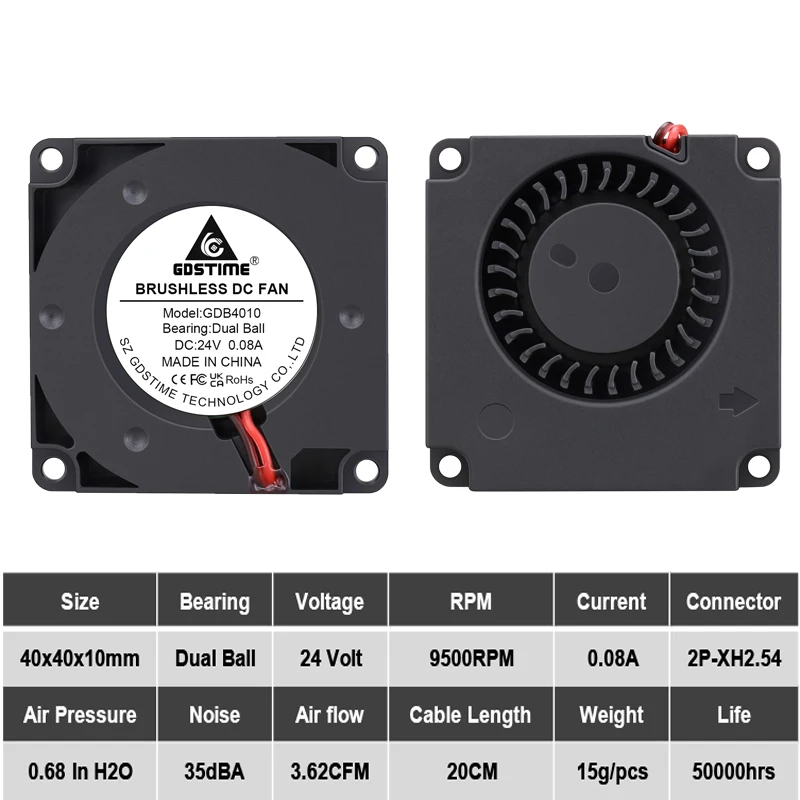 Comprar Gdstime-ventilador de turbina de 5 piezas, 24V, 40x10mm, 4010 DC, Turbo, cojinete, ventiladores de refrigeración radiales para Creality CR-10, Kit de impresora 3D