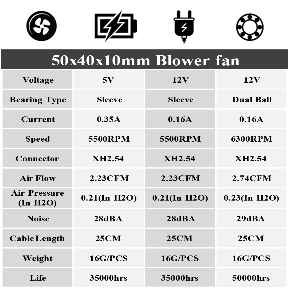 Comprar Gdstime-ventilador de turbina de refrigeración, 50x40x10mm, 5410, 5cm, 5V, 12V, 5410 manga, bola Dual Radial, 2 piezas