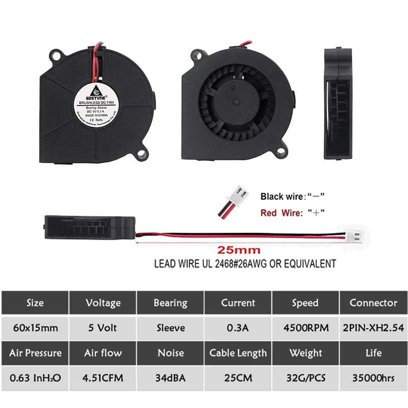 Comprar Gdstime-ventilador de turbina sin escobillas, 5 piezas, 5V, 60mm, 60mm x 15mm, 6CM, 6015, 2 pines
