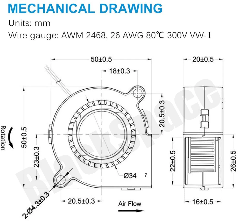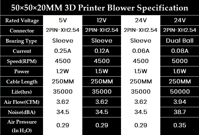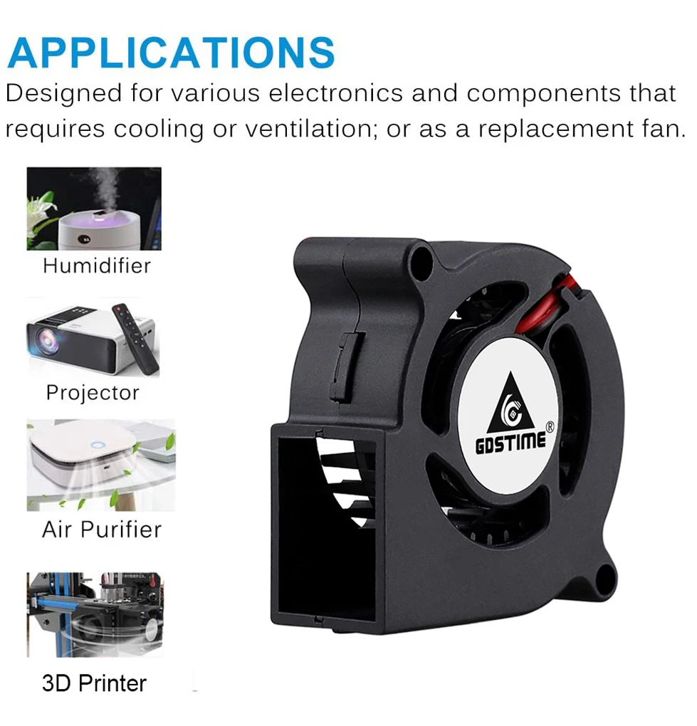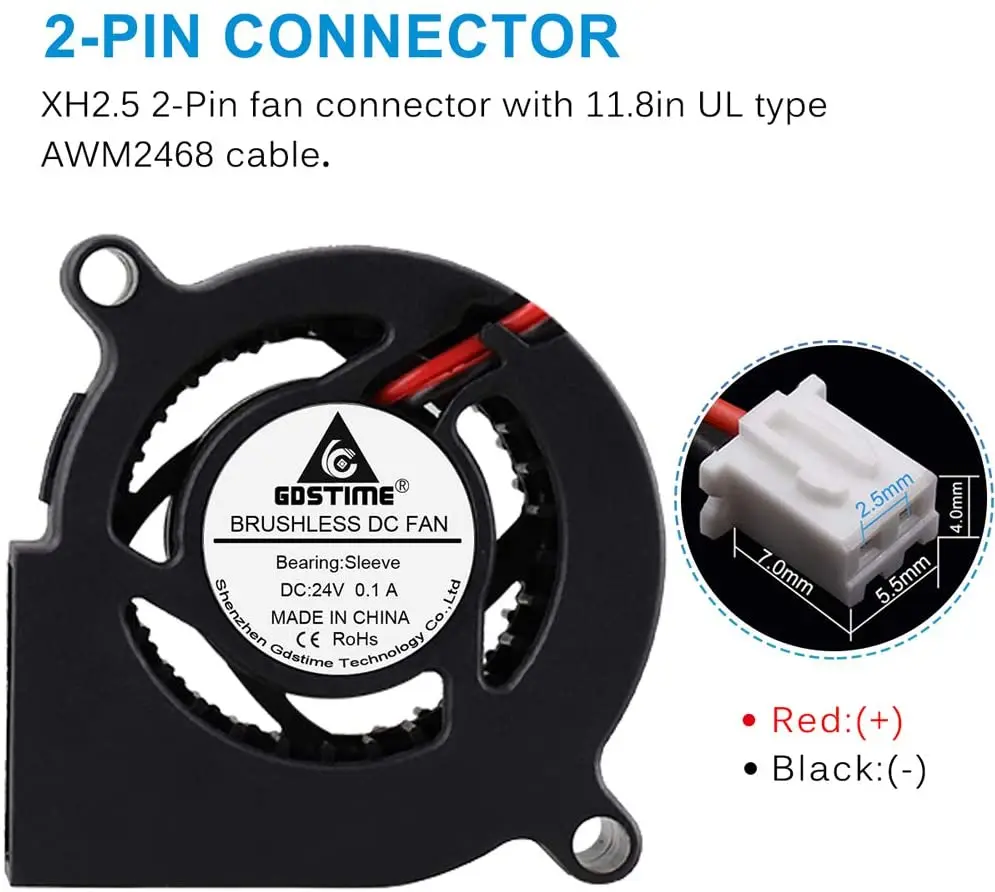 Comprar Gdstime-ventilador de turbina sin escobillas para impresora 3D, 2 piezas, 50 × 50 × 20mm, 5cm, DC 5V, 12V, 24V, 2 pines, luces LED