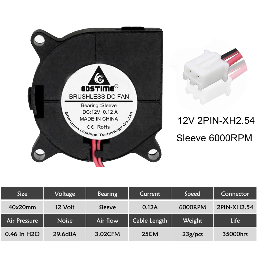 Comprar Gdstime-ventilador Turbo sin escobillas para impresora 3D, 500 piezas, 40mm, DC 12V, 0.12A, 6000RPM