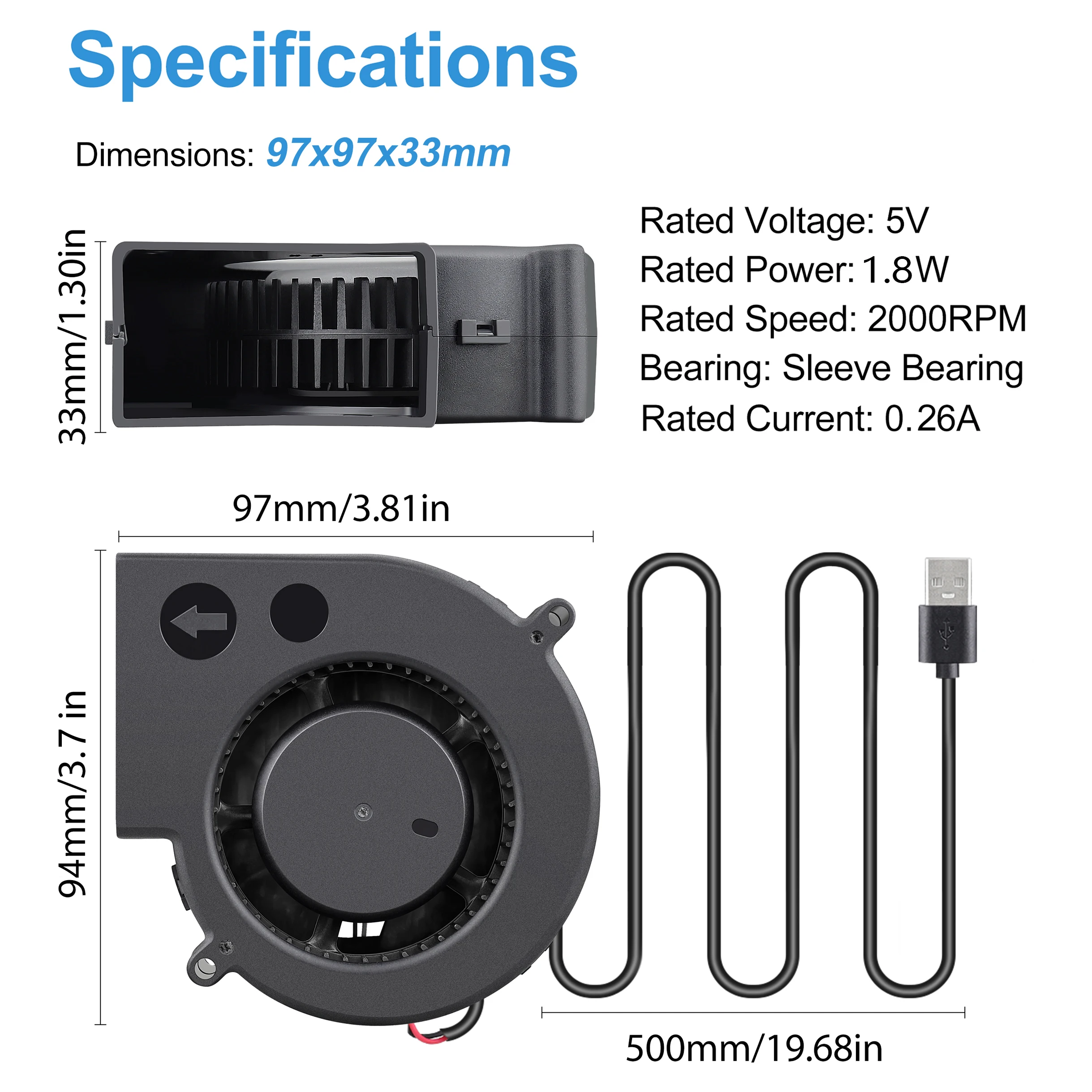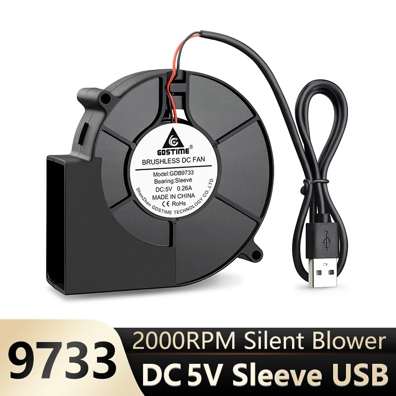 Comprar Gdstime-ventilador USB DC 9733, 5V, 97mm, 97x33mm, rodamiento de manga de 2000RPM, soplador de bajo ruido para armarios, ventilador Turbo centrífugo de barbacoa