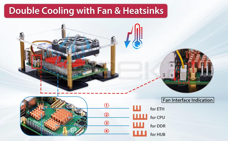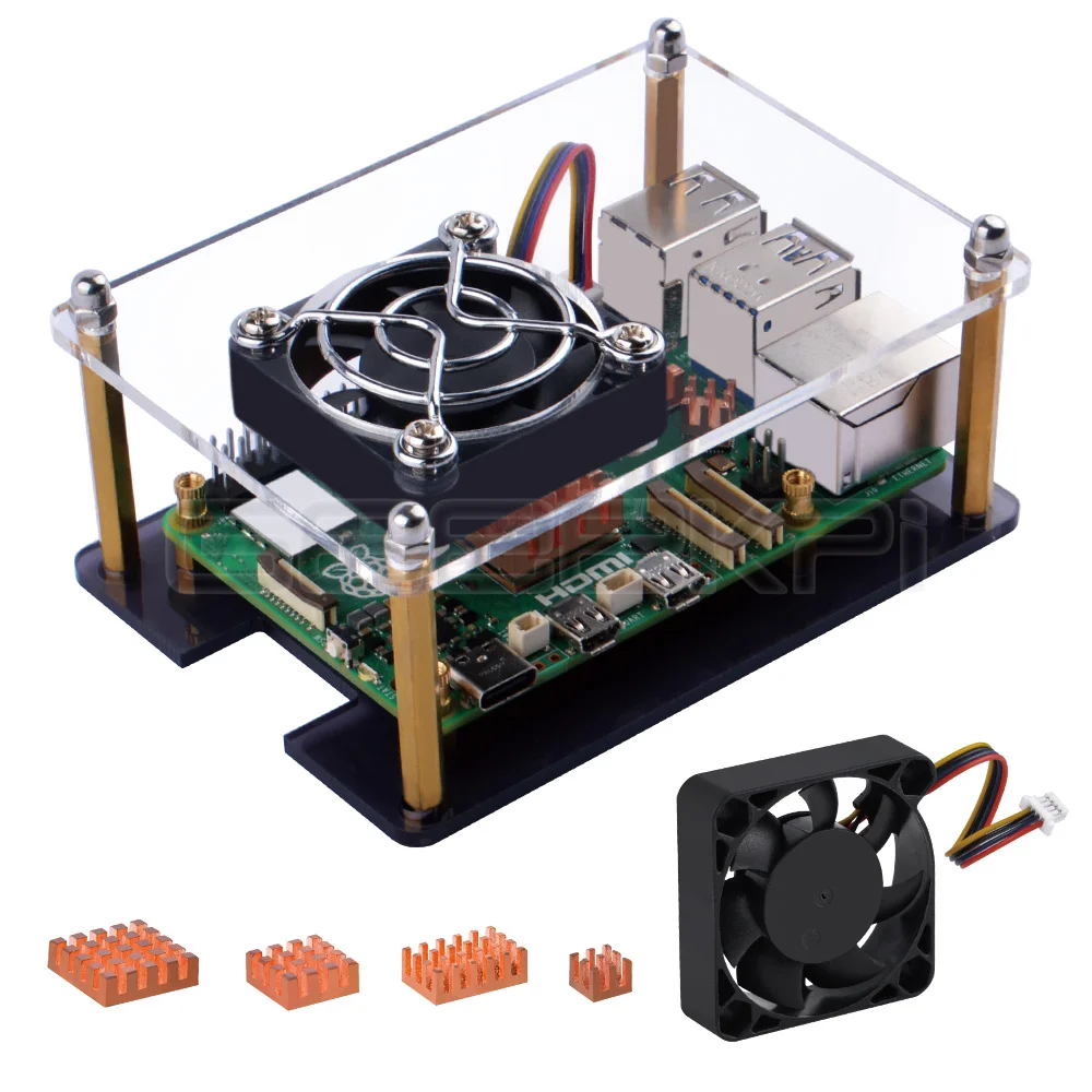Compatibilidad:Compatible con la placa de desarrollo Raspberry Pi 5, incluye una funda acrílica duradera para proteger y enfriar su placa, un ventilador de refrigeración de 40mm para mantener la placa funcionando sin problemas, Y 4 disipadores de calor de cobre puro para disipar el calor rápidamente.