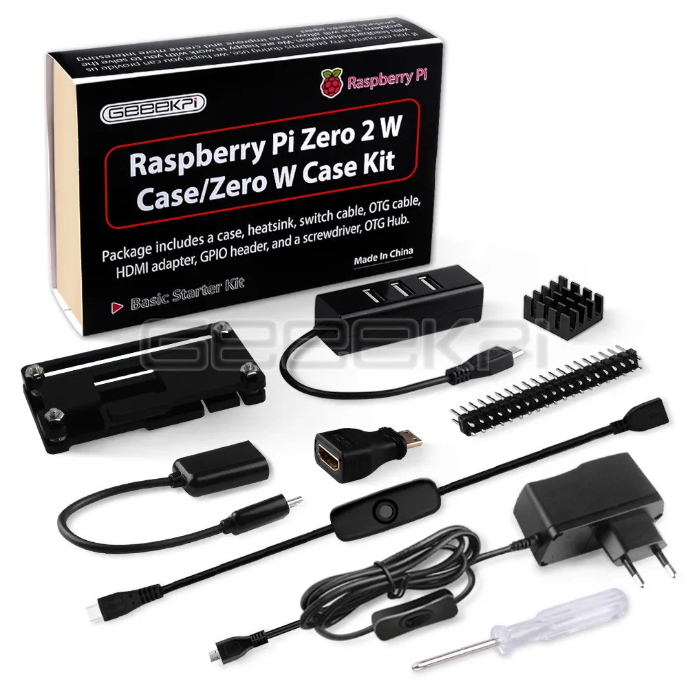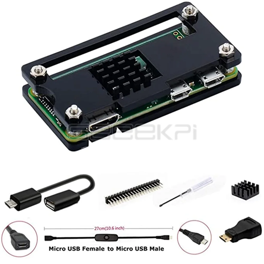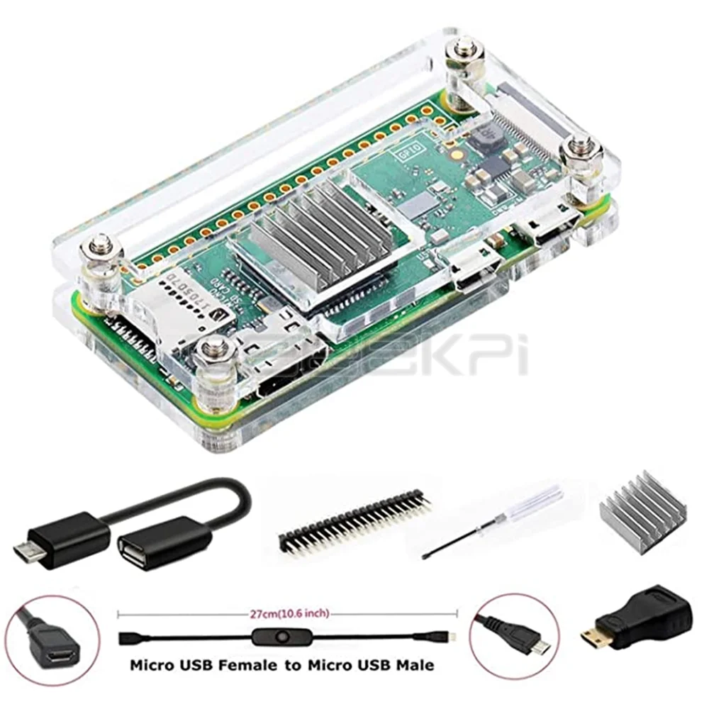 Comprar GeeekPi-Kit básico de iniciación para Raspberry Pi Zero, carcasa de 2W, 7 en 1, acrílico, cabezal GPIO de 20 pines