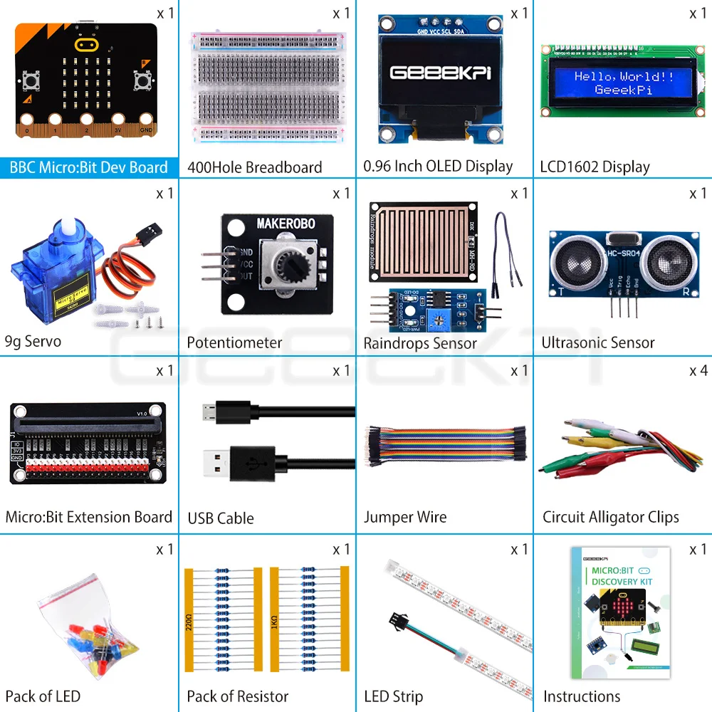 Comprar GeeekPi Microbit V2 Club Kit para padres e hijos Tarjetas Microbit V2 + Cable Micro USB + Batería y Soporte para programación de codificación