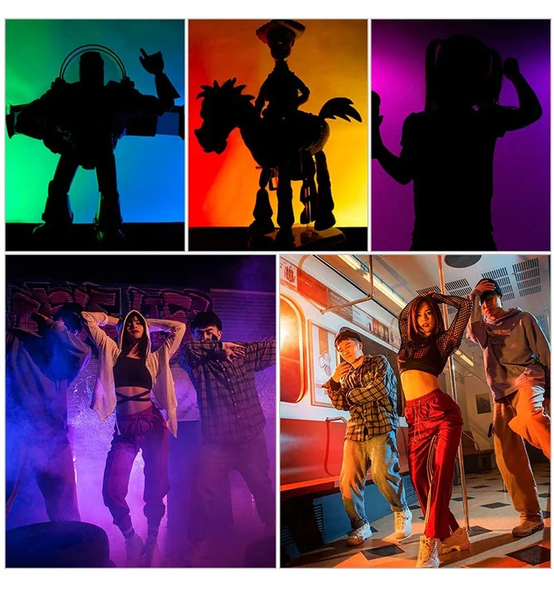 Los filtros de iluminación de colores Creat Magic Scene, o geles, se utilizan a menudo como luces de acento, o para agregar un color dramático a fondos o partes seleccionadas de una escena para un efecto artístico.