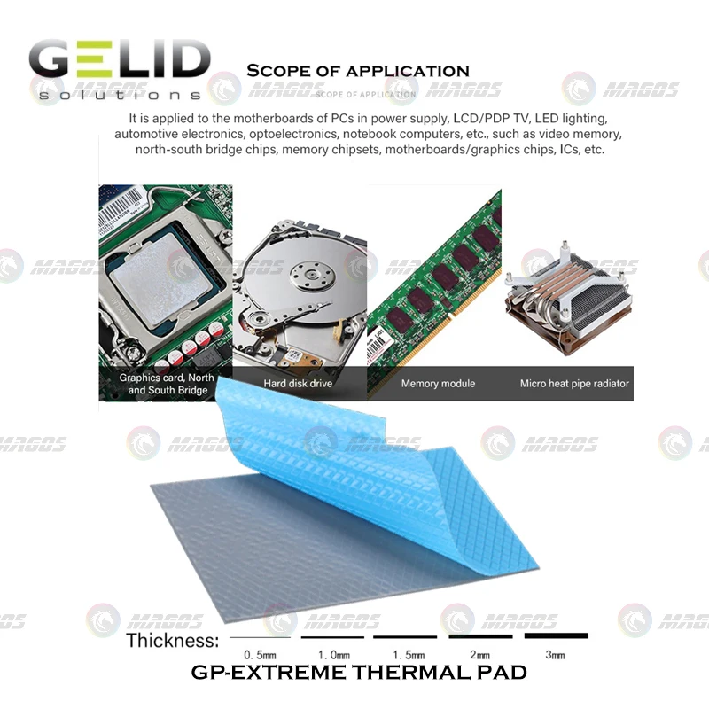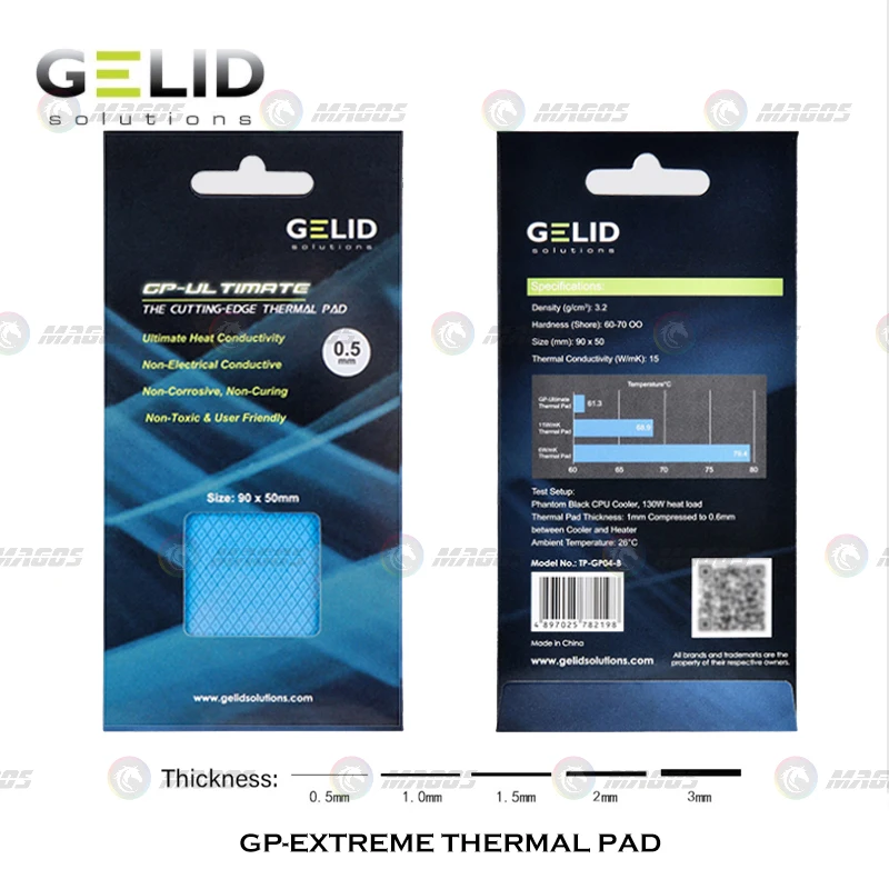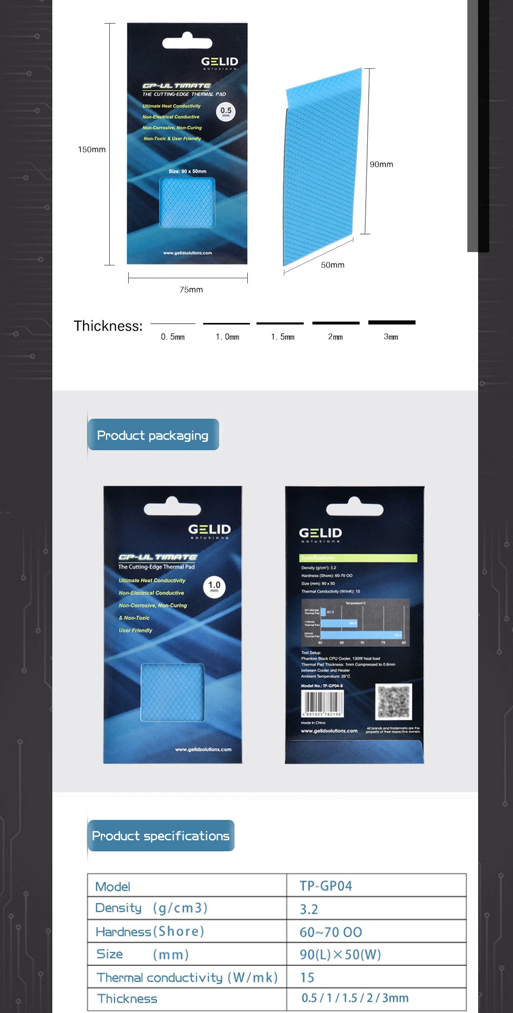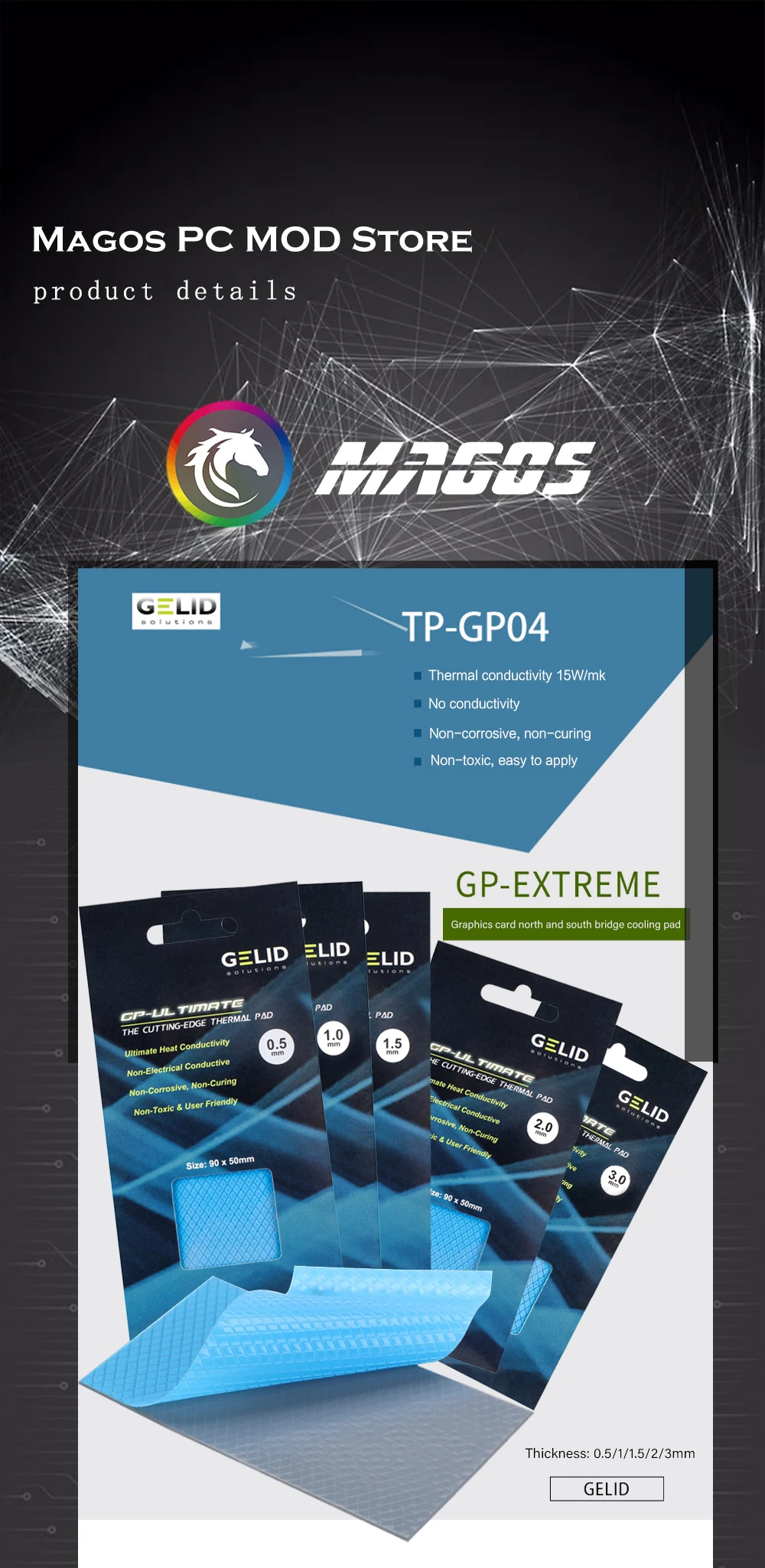 GELID 15 W/m.k almohadillas térmicas/almohadilla de silicona para Notebook CPU / GPU / RAM / SSD refrigeración de ordenador, disipador de calor de silicona GELD 90 × 50mm