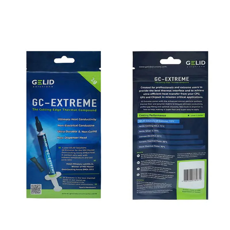 Model Name:GC-Extreme Thermal CompoundDensity(g/cm3):3.73Viscosity:85000(Centipose)Content:2g/3.5gConductivity(W/mk):8.5
