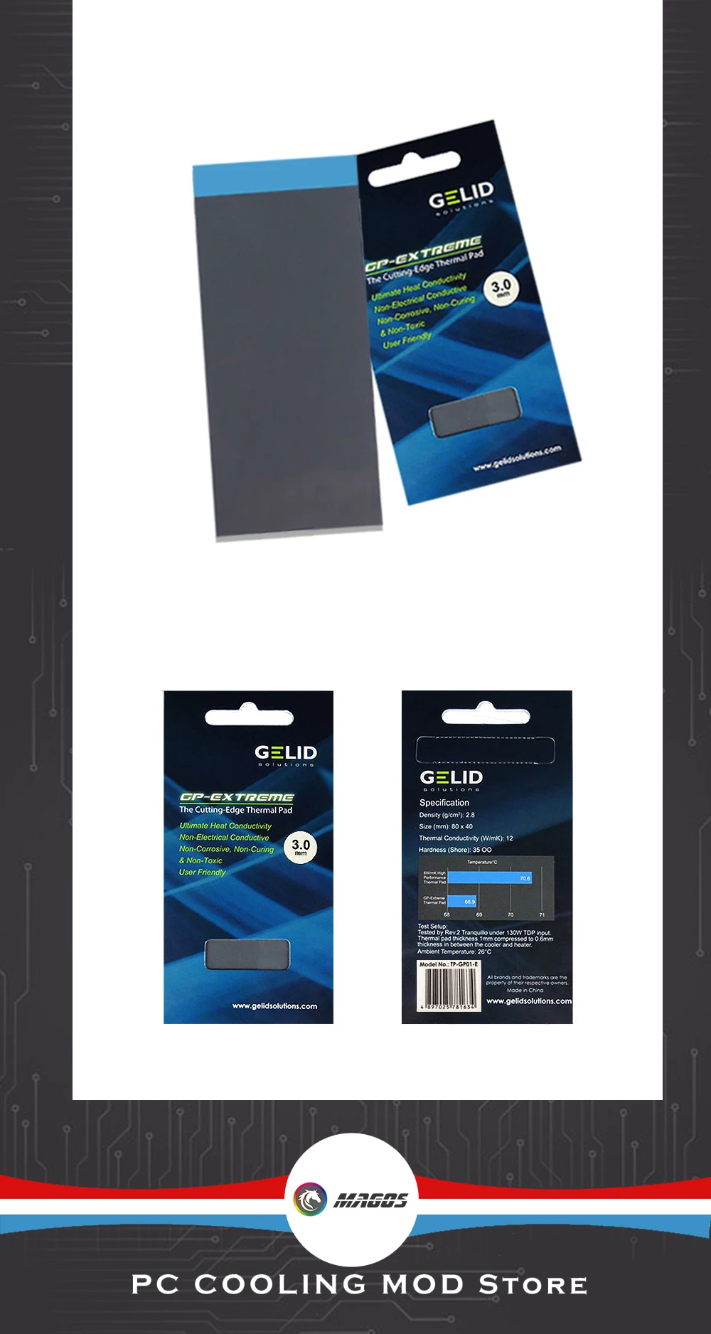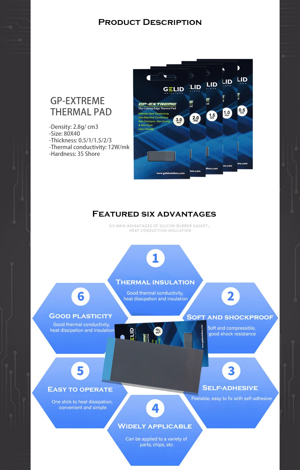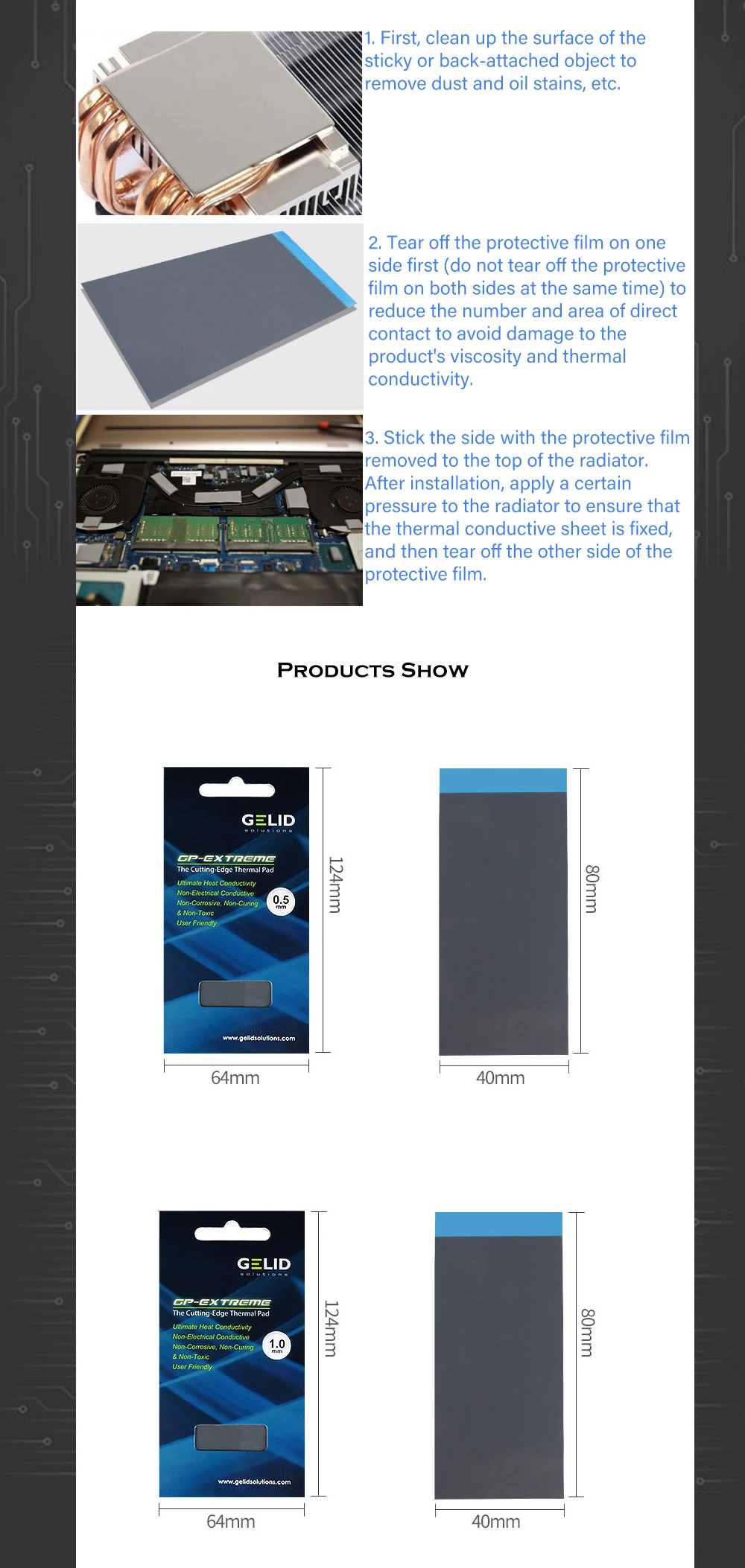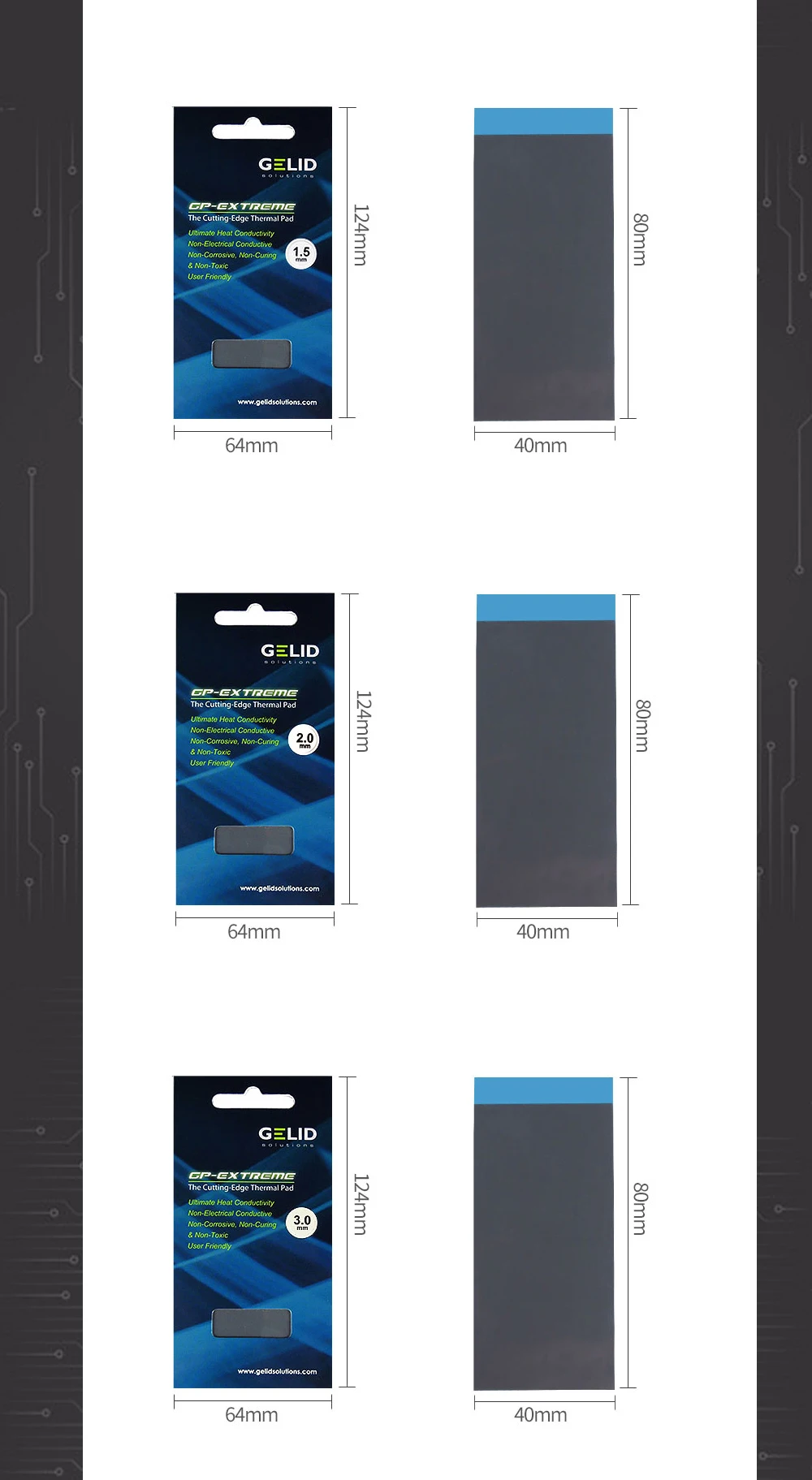 Gelid GP-Extreme 12W/mk almohadilla térmica para tarjeta gráfica GPU Northe & South Bridge junta de estera de silicona de refrigeración 80*40mm 0,5-3mm