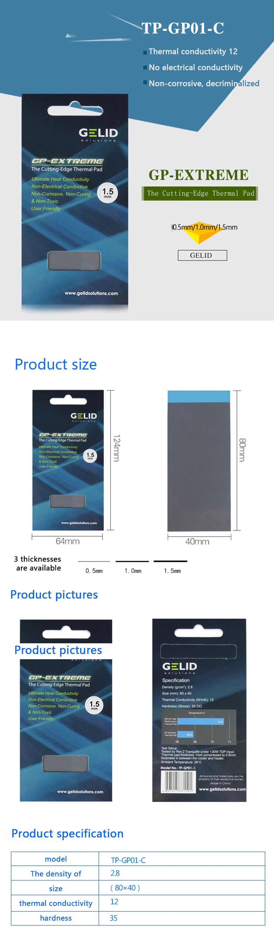 GELID GP-EXTREME almohadilla térmica de borde de corte 80X40mm 0,5/1,0/1,5/2,0/3,0mm 12W/MK para refrigeración por disipador térmico GPU de CPU portátil