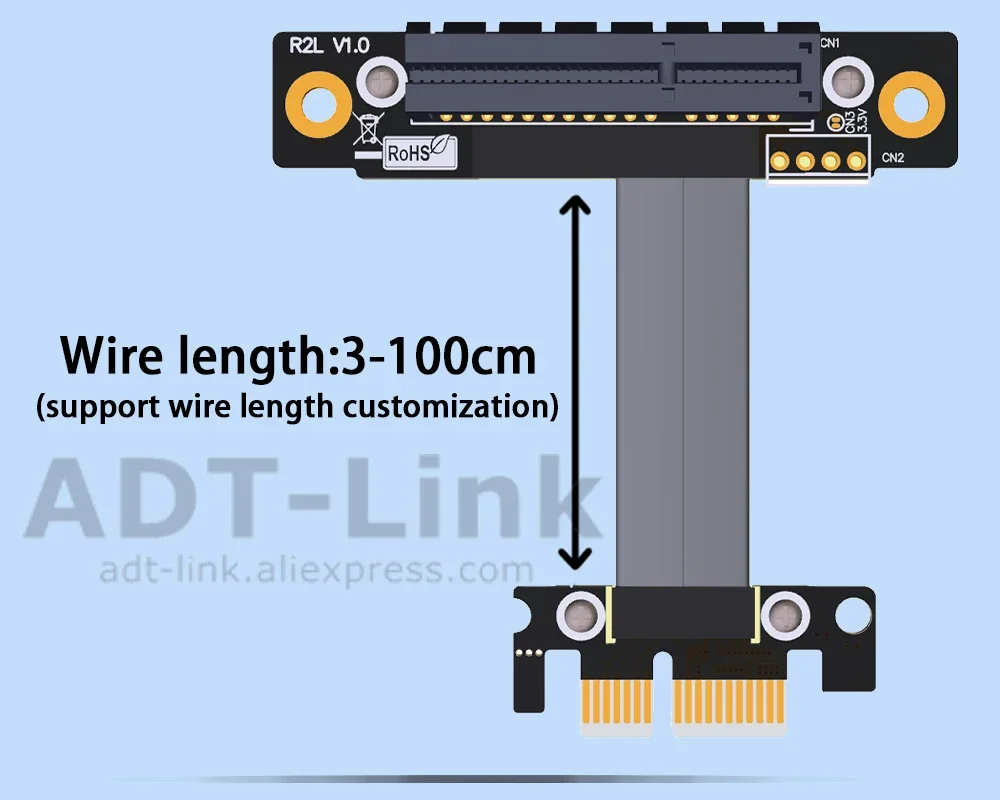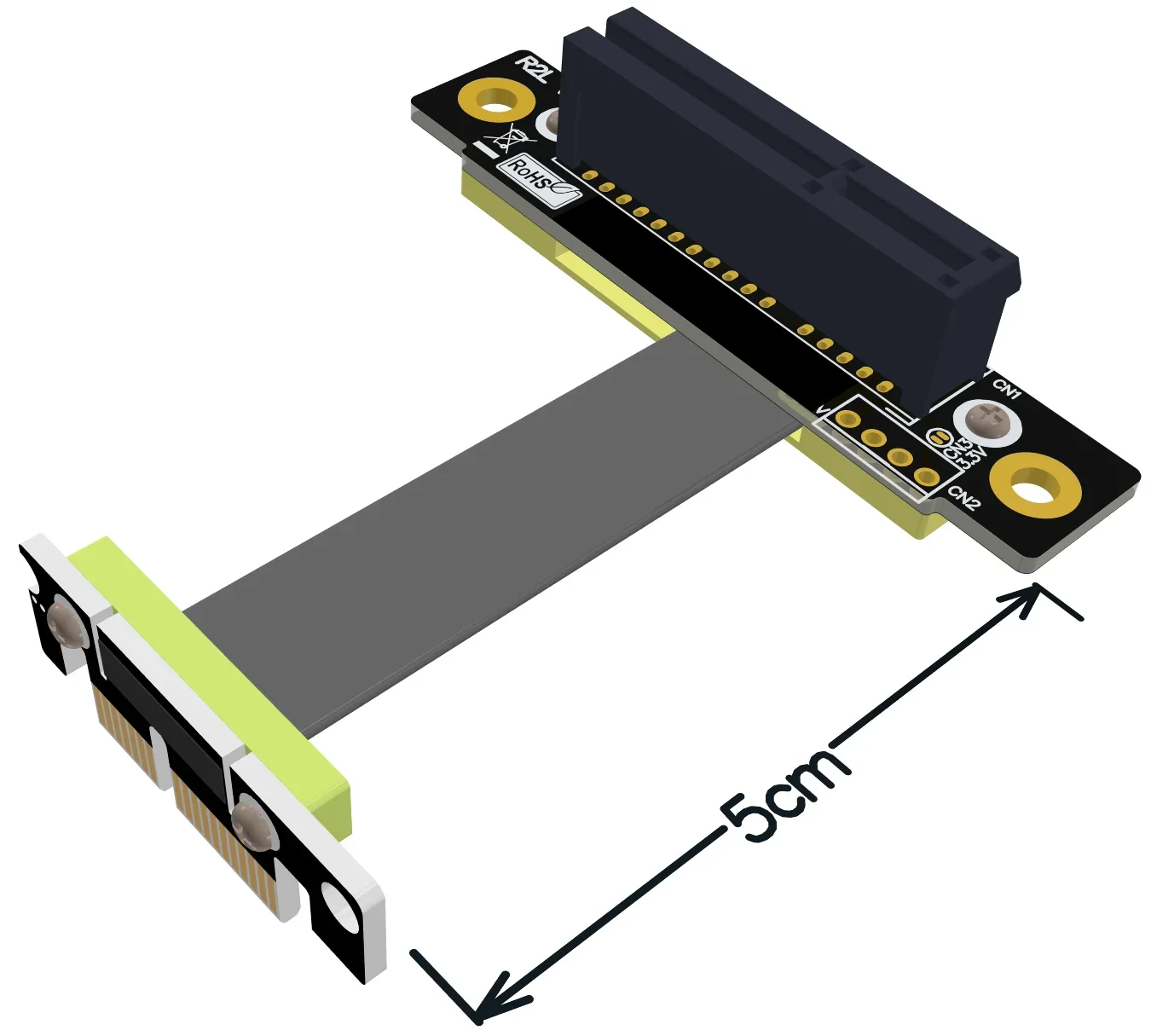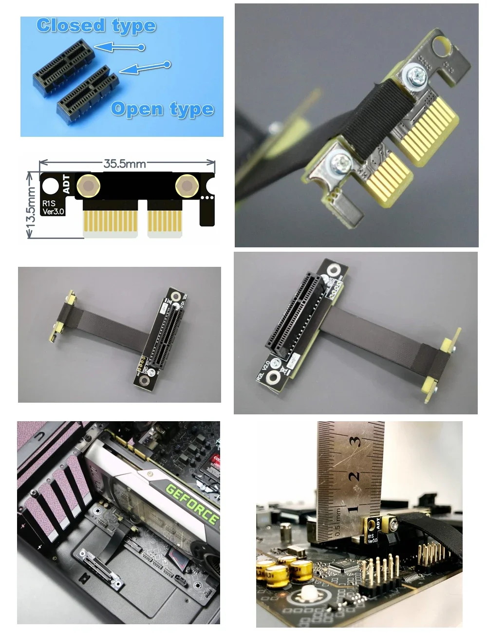 La imagen de arriba utiliza el modelo ADT R12SL-FL 5cm.A través del cable de extensión, la interfaz PCIe x1 de la placa base original se puede mover hacia la izquierda mediante 3 ranuras y se pueden insertar tarjetas superiores a PCIe x4, como tarjetas de red, tarjetas de memoria, tarjetas gráficas, tarjetas de expansión USB, etc.Etc.Es más flexible de usar.