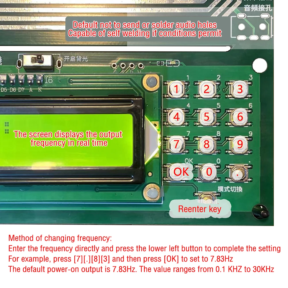 2.Este producto no solo puede generar ondas Schumann de 7,83 Hz, sino que también incorpora tecnología de modulación de frecuencia programable, que puede ajustar la frecuencia dentro del rango de 0,1 Hz ~ 30 KHz;