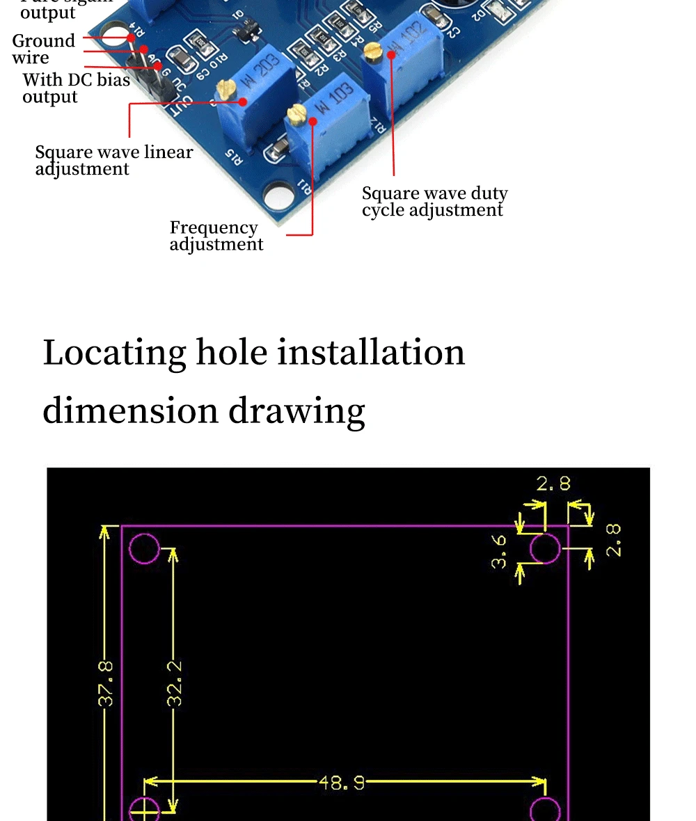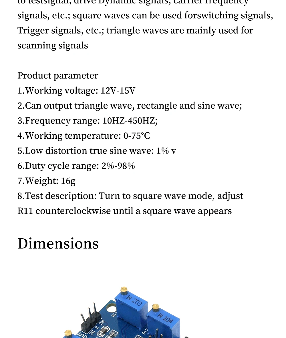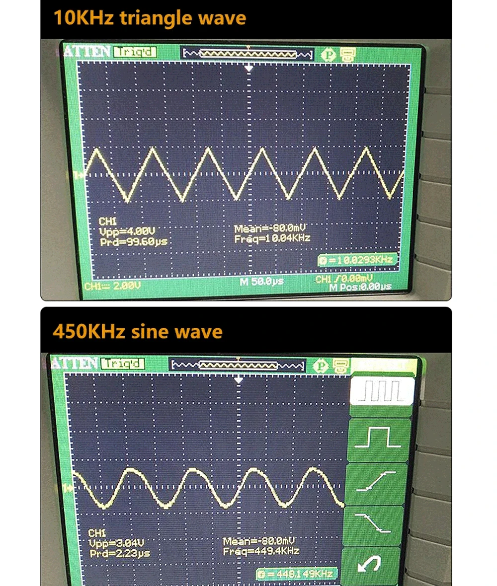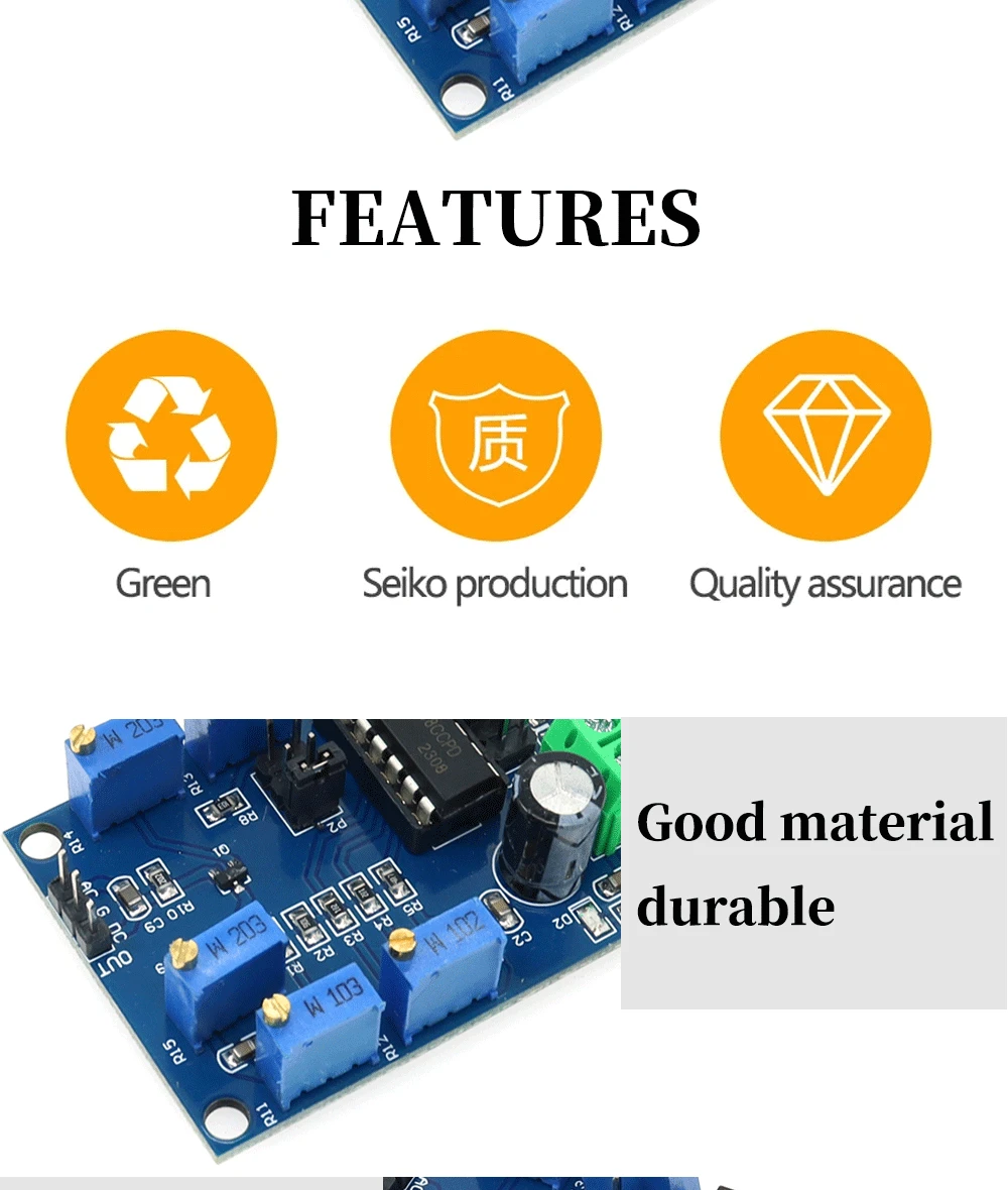 El módulo LC ICL8038 está diseñado para rangos de frecuencia comunes.Ajustable desde 5 niveles para generar ondas triangulares de baja distorsión, ondas sinusoidales y sinusoidales de 10 Hz a 450 KHz.La onda sinusoidal se puede utilizar para señales de prueba, señales de conducción, señales de frecuencia portadora, etc.; La onda cuadrada se puede utilizar para cambiar señal, activar señal, etc.; La onda triangular se utiliza principalmente para escanear señales.