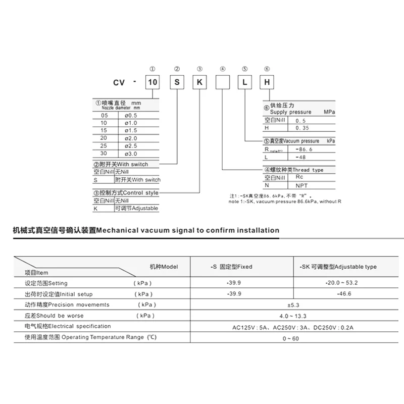 Generador de vacío ACV/CV/ cv-10hs 20HS 25HS generador de vacío ventosa control de presión negativa válvula de vacío 15/20/25hs
