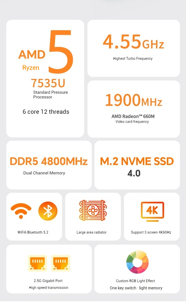 GenMachine AMD Ryzen™ 5 7535U Windows 11 Ryzen MINI PC 6 Núcleos 12 Roscas 2.9GHz TDP 35-54W WIFI6 ordenador de juegos diy