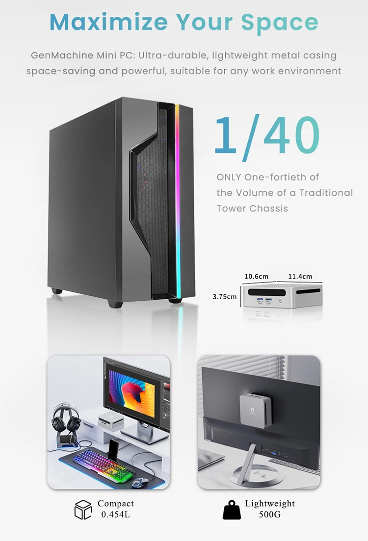 GenMachine Mini PC 5980HX Windows 11 Ryzen DDR4 Máximo 64 GB 3,3 GHz Hasta 4,8 GHz WIFI6 Mini computadora para juegos Diy PC Gamer Gaming