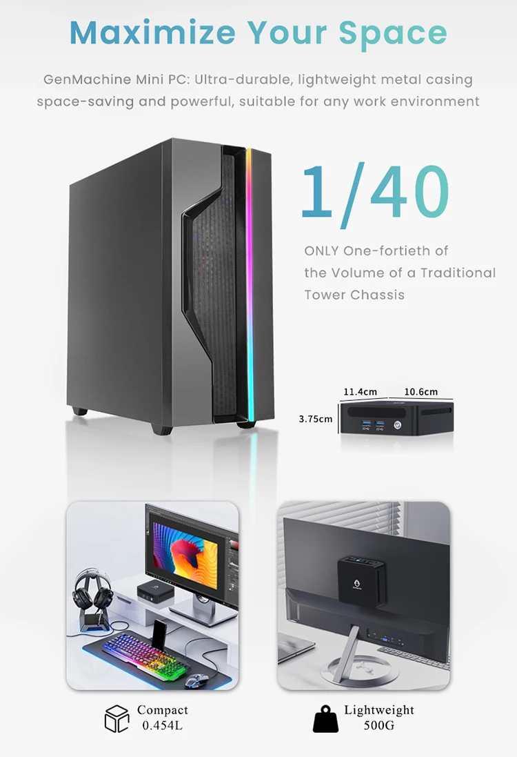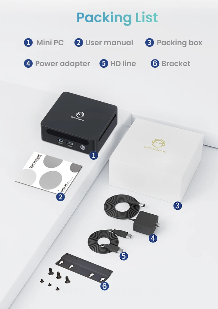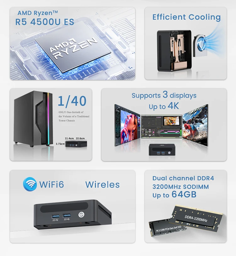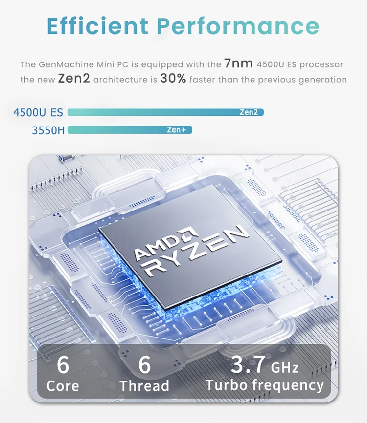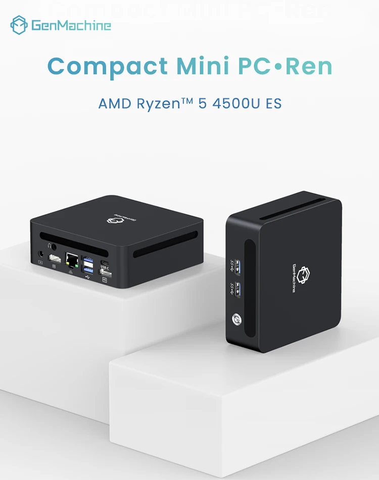 GenMachine Mini PC Ren4000 4500U ES AMD Ryzen5 4500U ES Windows 11 DDR4 3200Mhz Soporte Máximo 64GB RAM WiFi6 orden de juegos
