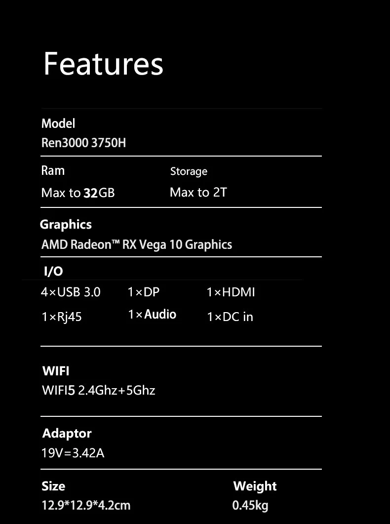 GenMachine Nuevo Mini PC AMD Ryzen 7 3750H CPU Windows 10/11 DDR4 Ren3000 3750H Escritorio USB WIFI 5 1000M AMD NUC Computadora para juegos