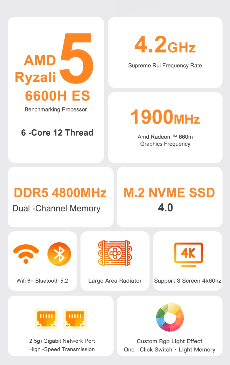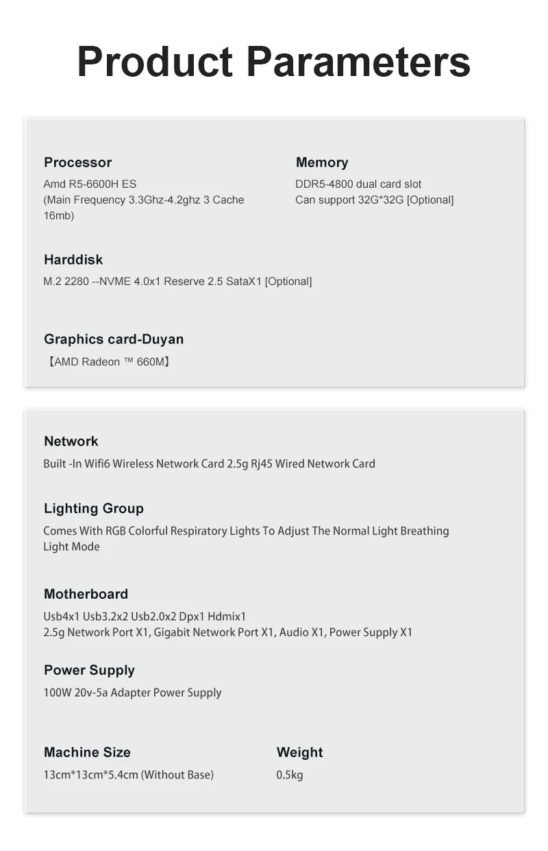 Genmachine nuevo R5 6600H ES Mini PC Windows 11 WiFi 6 Gaming PC 6 núcleos 12 hilos CPU Supprot DDR5 4800MHz Ram pantalla