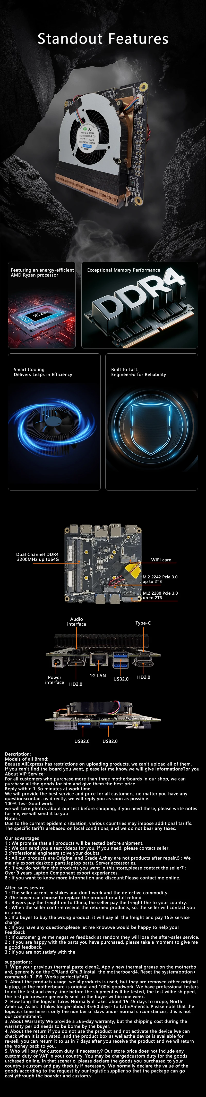Genmachine AMD Ryzen ™ 7 7730U CPU + Kit de placa base Ryzen placa mae para ordenador portátil MINI PC placas base con ventilador de radiador