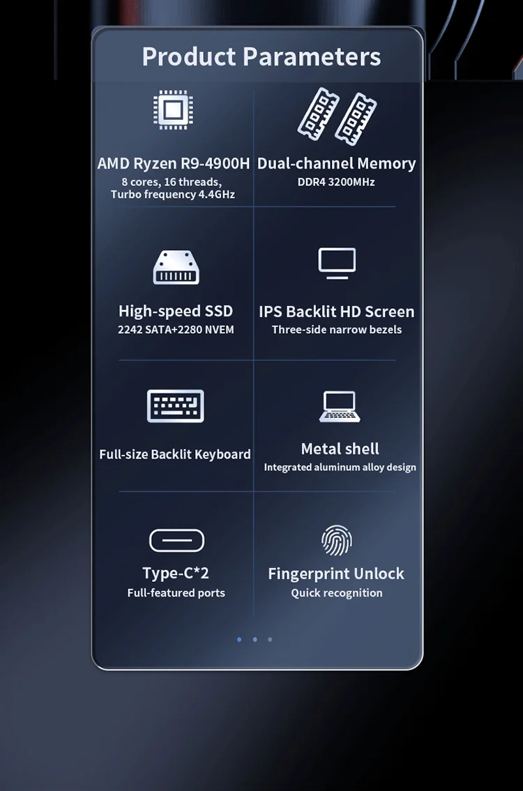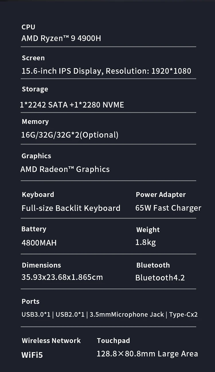 Genmachine Laptop AMD Ryzen™ 9 4900H 15,6 pulgadas LPDDR4 RAM M.2 NVME SSD computadoras portátiles para juegos de negocios computadora portátil Gráficos Radeon