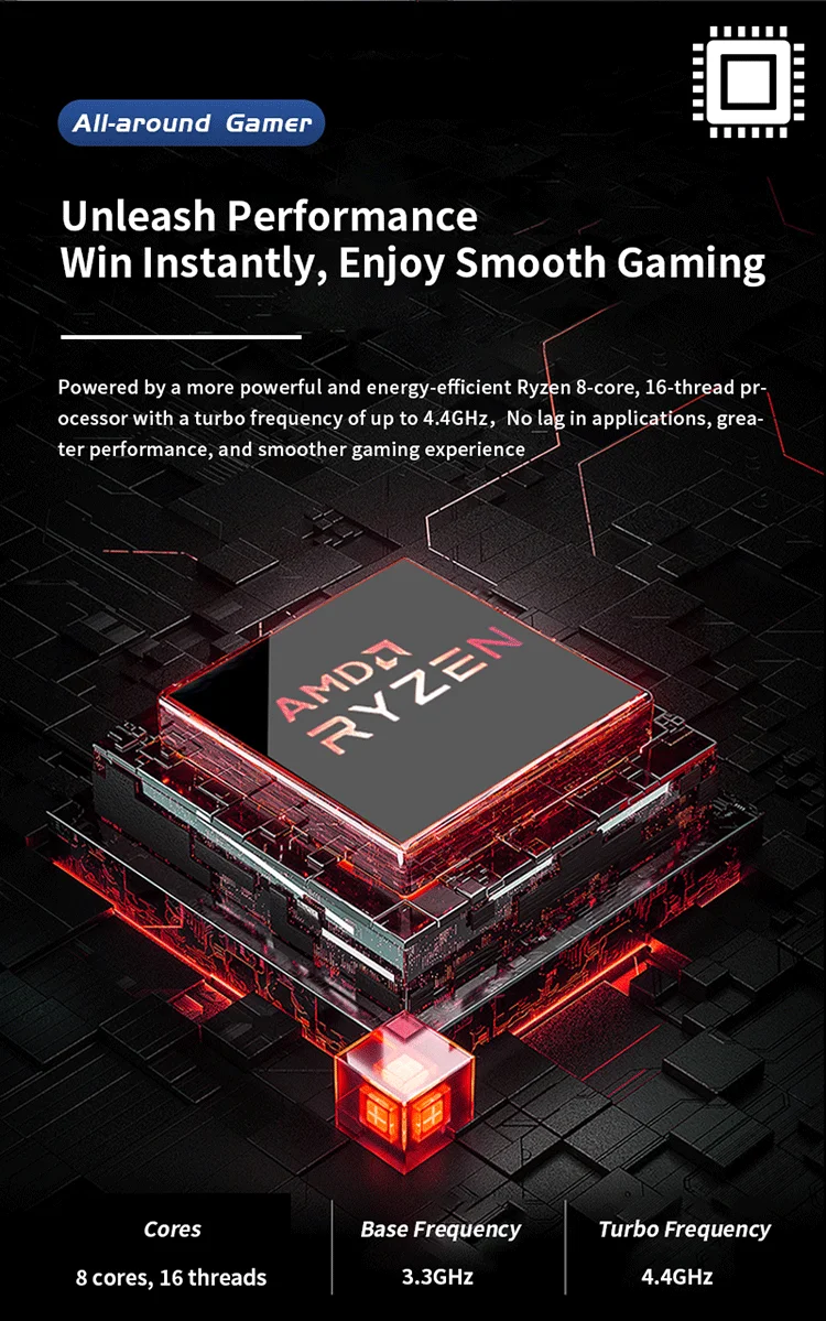 AMD Ryzen ™ 9 4900H, 8 núcleos 16 roscas, 3,3 GHz hasta 4,4 GHz, TDP: 35-54 W