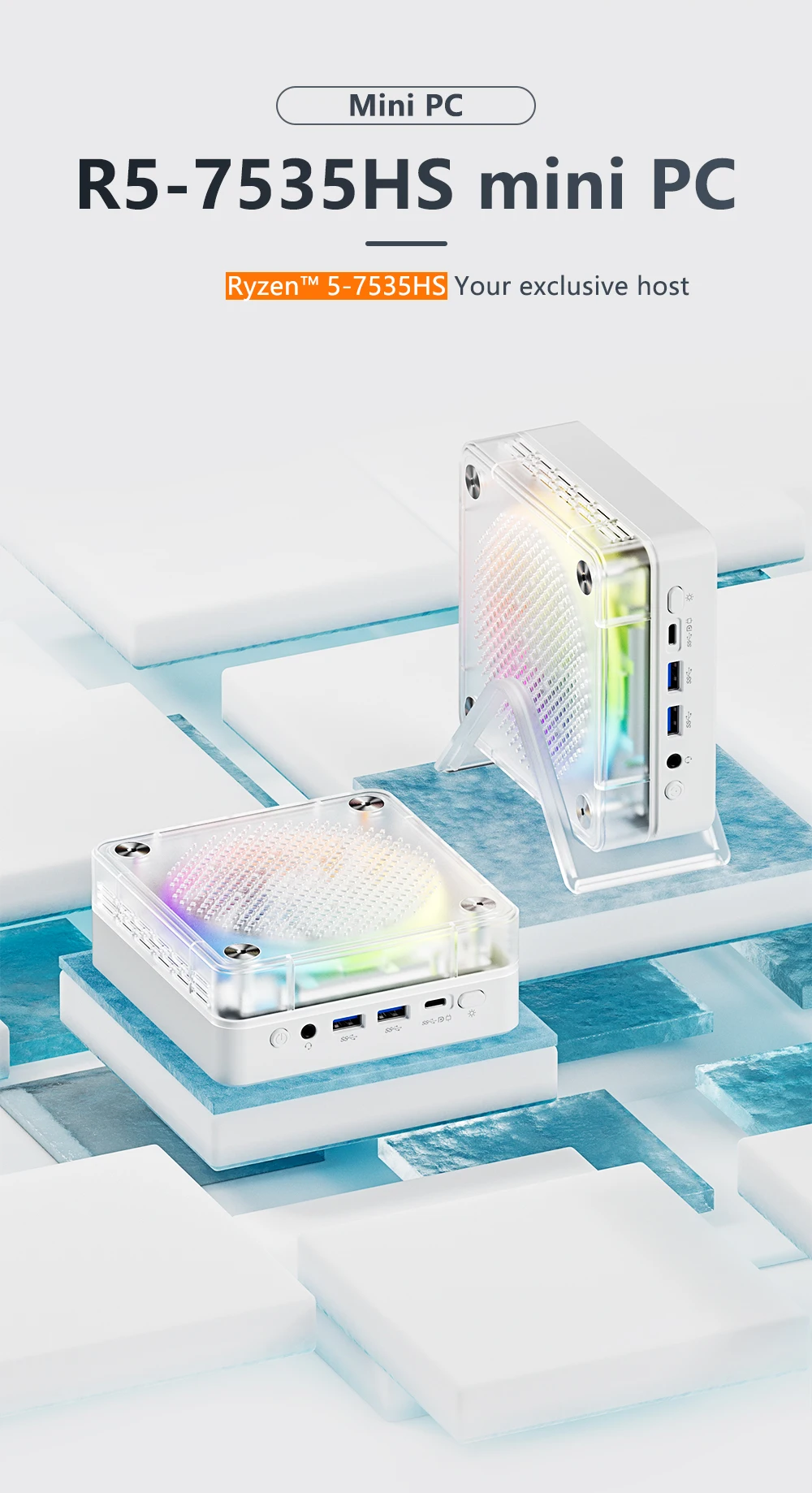 GenMachine AMD Ryzen 5 7535HS Light MINI PC Windows 11 Pro 8Cores DDR5 4800Mhz 256/512GB SSD WIFI6 BT5.2 Computadora de escritorio para juegos