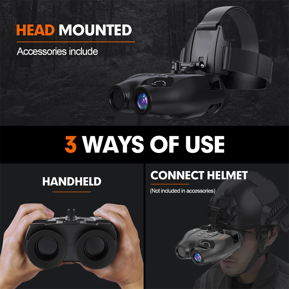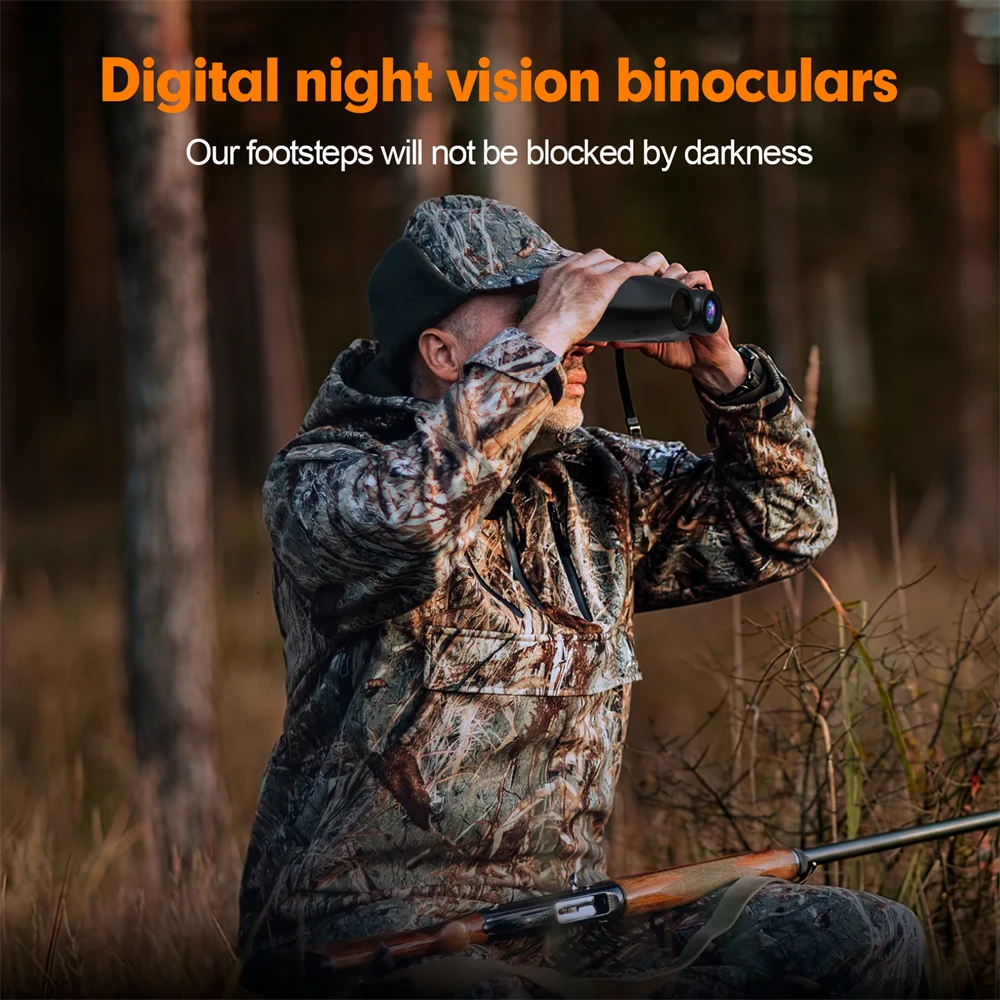 Prismáticos de visión nocturna N4, la distancia de visión nocturna es de aproximadamente 300 metros en completa oscuridad, LED infrarrojo de 850 nm, brillo ajustable de 7 niveles, puede grabar videos de alta definición de 1080P, con función de zoom digital de 5x, se puede usar en exteriores de día y de noche