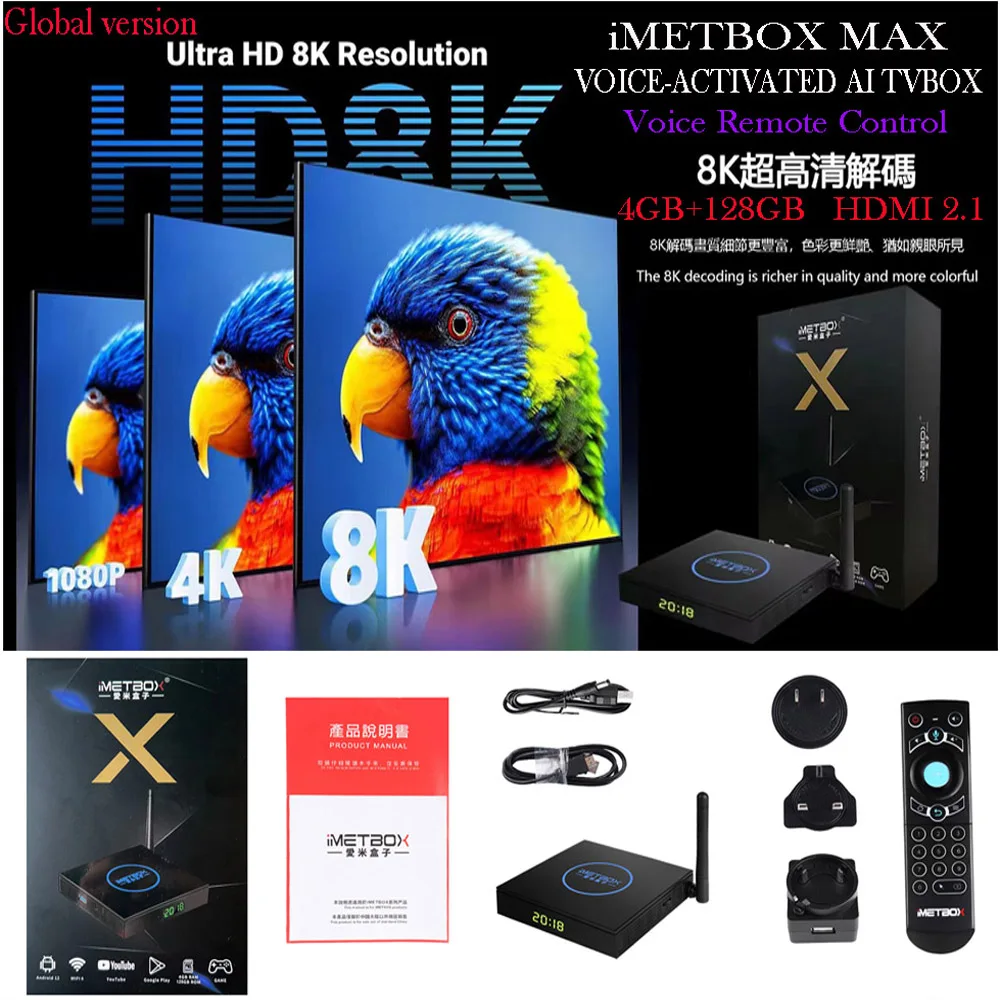 [Genuino] La mejor caja de TV inteligente global iMETBOX Max Android12 8K 4GB 128GB Control de voz en SG MI KR JP EE. UU. CA India AUS PK Evpad Box