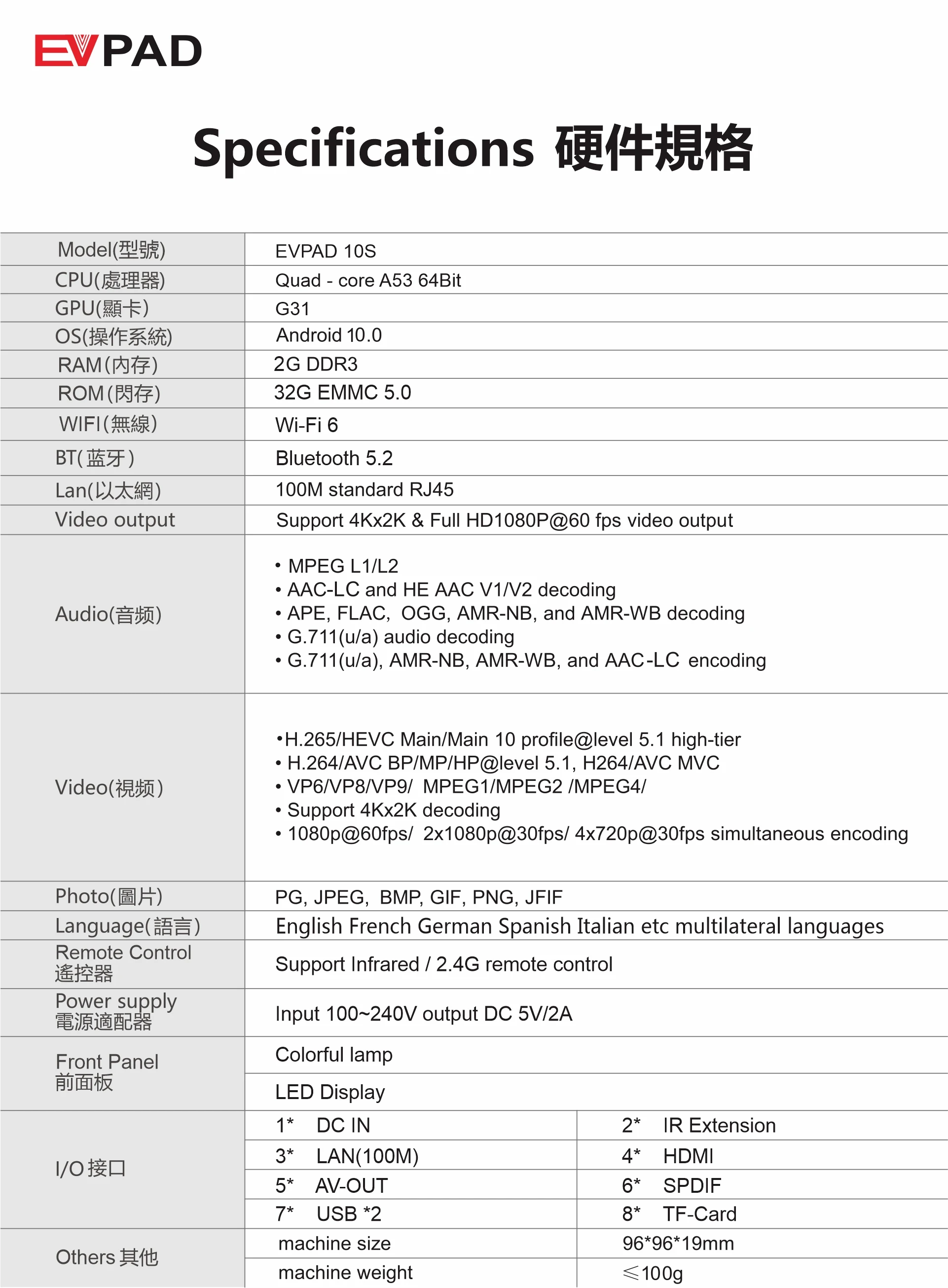 Producto 1: EVPAD 10S 2+32G (para usuarios de Asia, Europa y América, trabajan en todo el mundo)