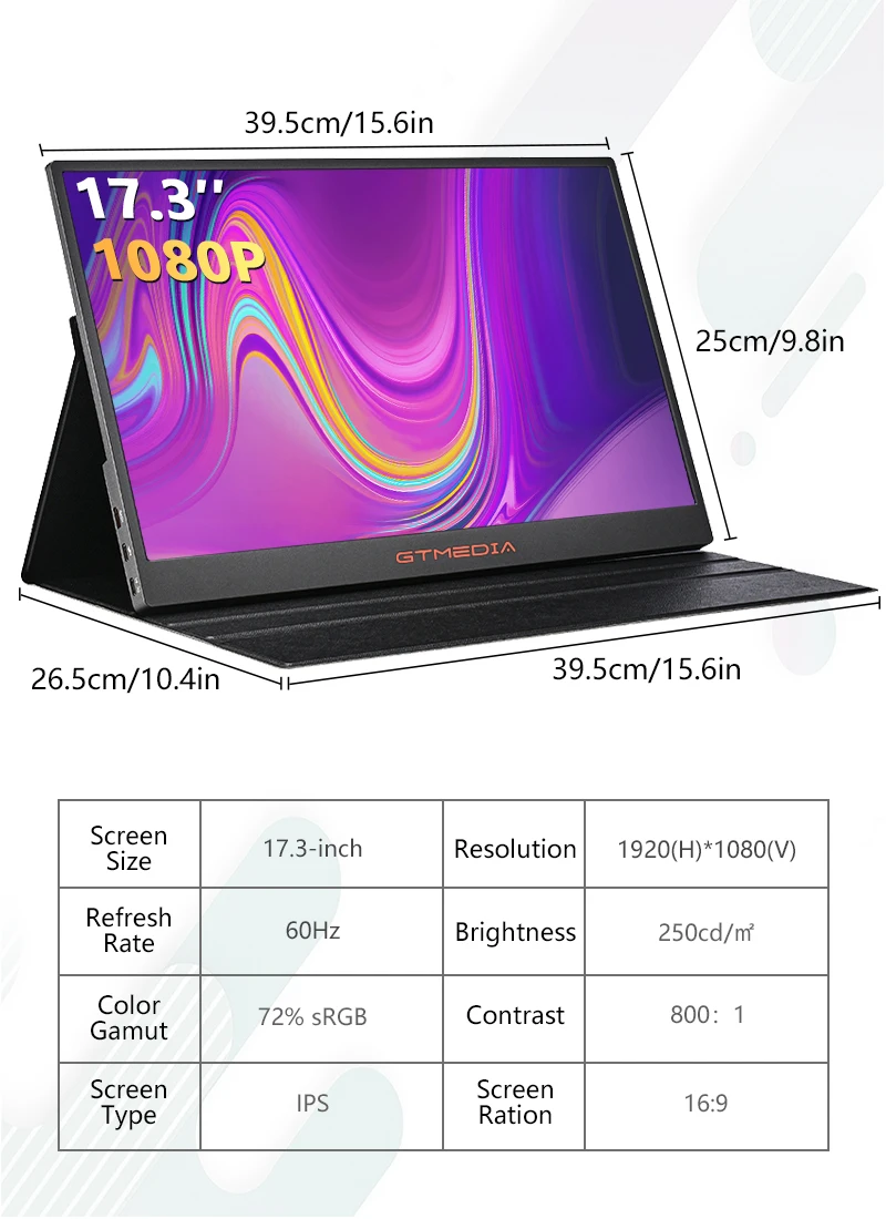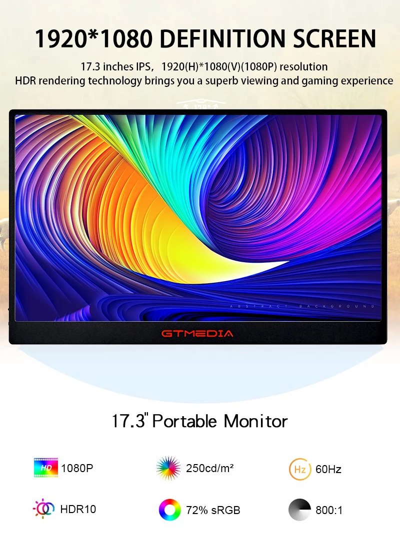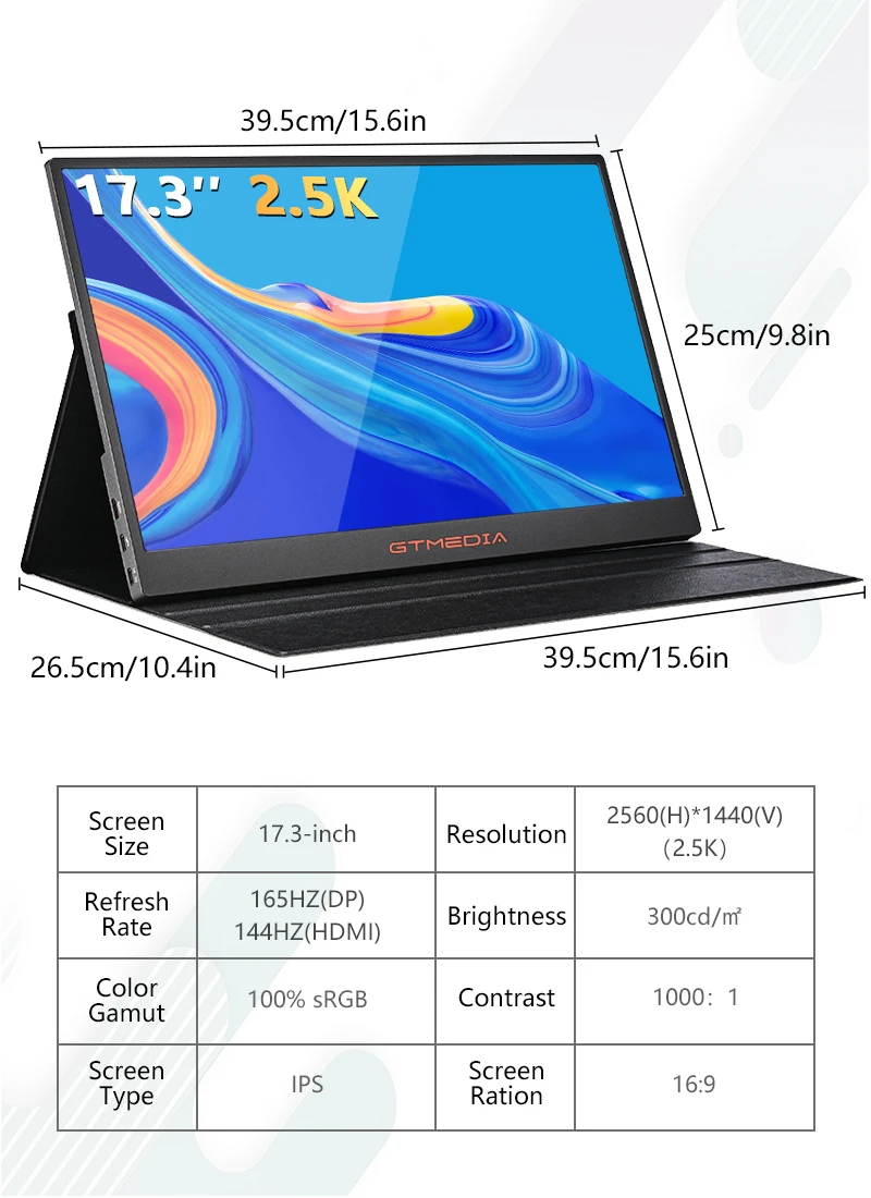 [Genuino]Juego GTMEDIAMATEMÁTICO 173 17,3 pulgadas 2.5KPantalla portátil de 144 HZ, pantalla de juego de 2560*1440 para teléfono portátil, Xbox PS4/5 Switch PK 173F