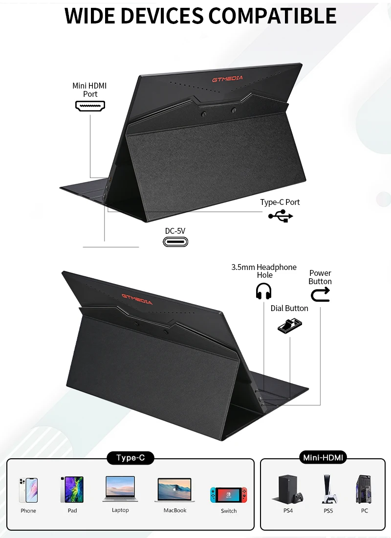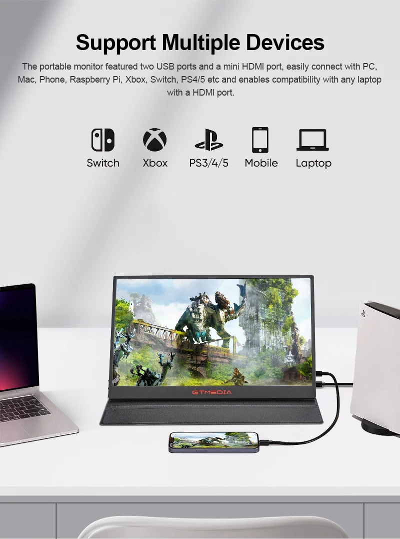 Comprar [Genuino] GTMEDIA GAME MATE 173 144HZ pantalla portátil 2560*1440 pantalla de juego para ordenador portátil teléfono Xbox PS4/5 Switch PK 173F