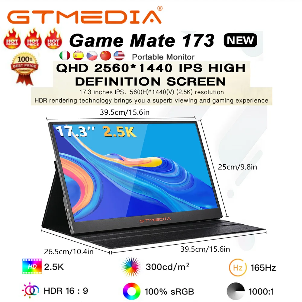 [Genuino]Juego GTMEDIAMATEMÁTICO 173 17,3 pulgadas 2.5KPantalla portátil de 144 HZ, pantalla de juego de 2560*1440 para teléfono portátil, Xbox PS4/5 Switch PK 173F