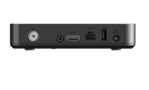 Puerto: 1 * DVB-T/T2, 1 * HDTV 2.1, 1 * USB 2.0, 1 * AV CVBS y salida L/R 3,5 mm, 1 * LAN RJ45, 1 * CC 12 V/1 A