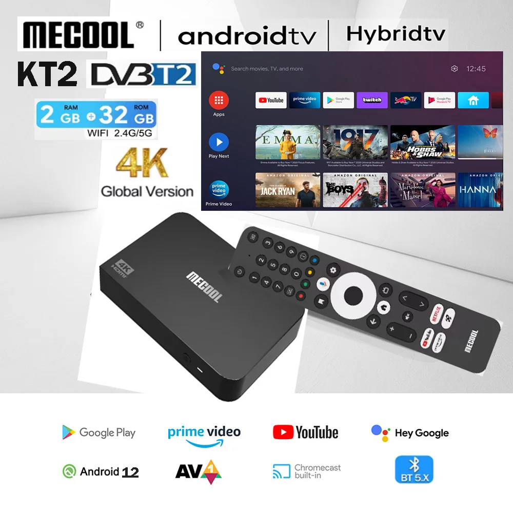 [Genuino] El más nuevo MECOOL KT2 DVB T2 Android 12 TV Box Certificado por Google Netflix ATV 100M S905Y4 WIFI 2,4G/5G 2T2R Reproductor multimedia DVB
