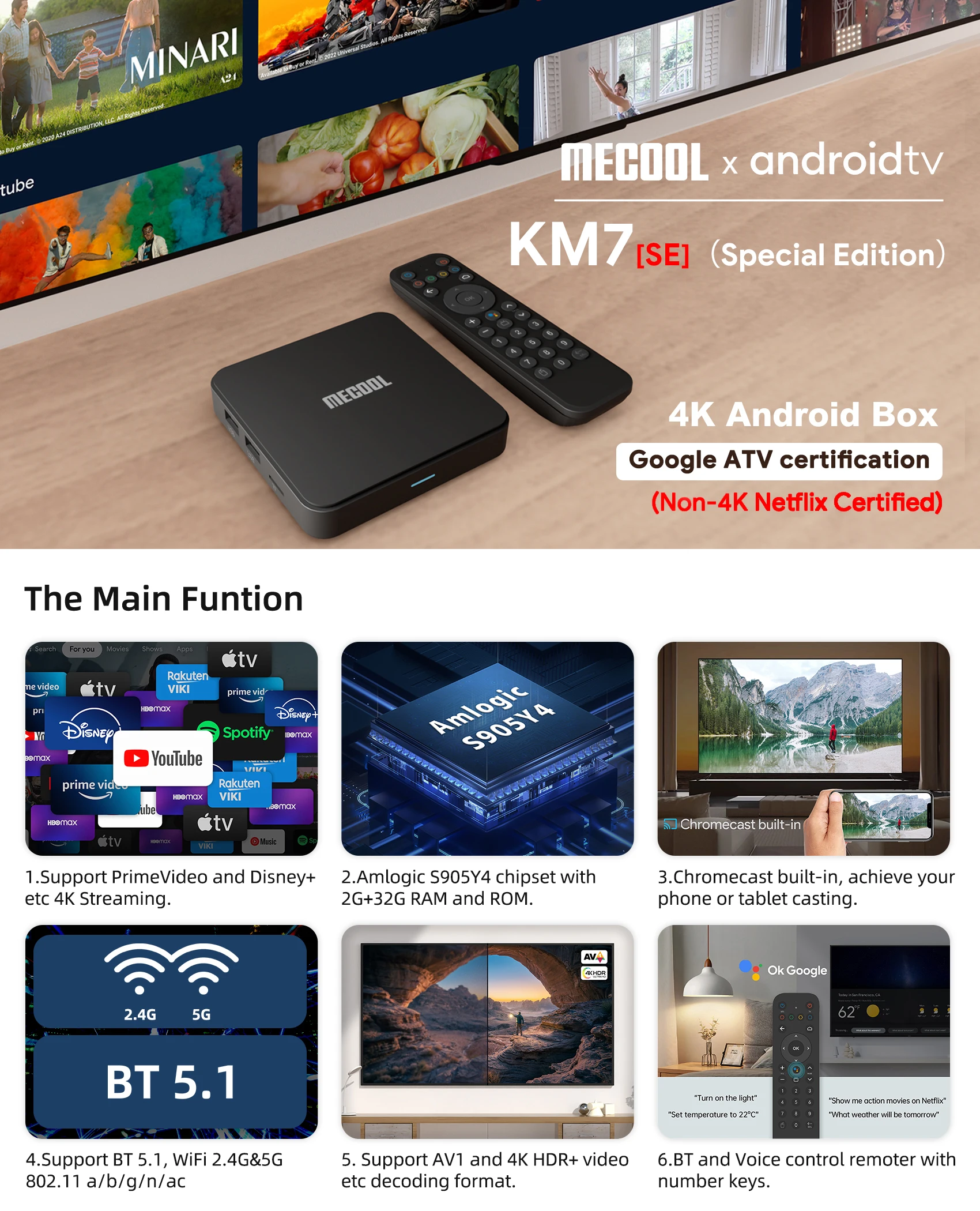 MECOOL KM7 SE está oficialmente certificado por Google Voice.
