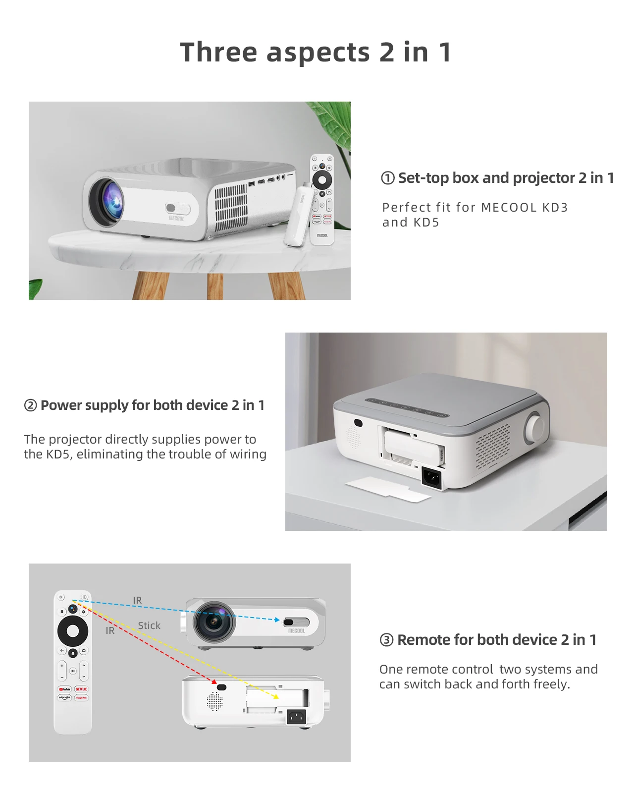 ① Set-top box and projector 2 in 1:Perfect fit for MECOOL KD3 and KD5
