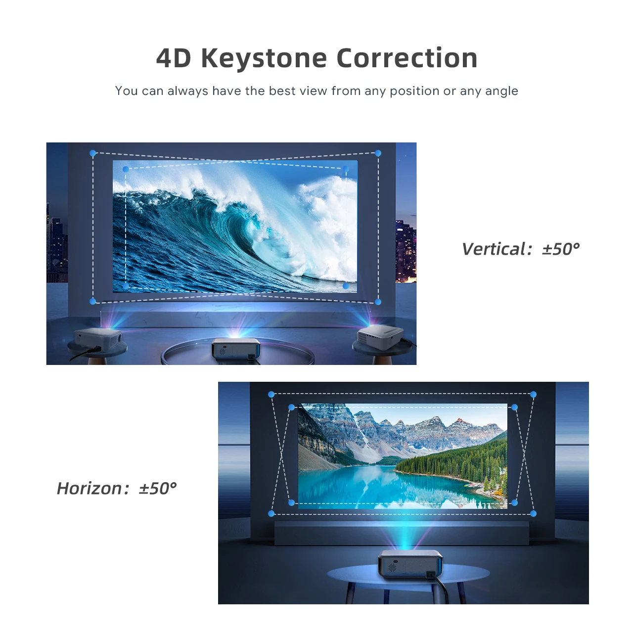 *Equipped with ± 50°keystone correction, which supports vertical and horizontal image correction, you can easily get the correct image.