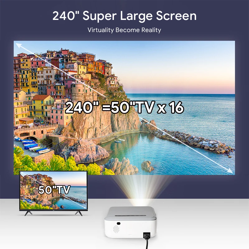 Enjoy a 100-inch screen,perfect for both large and samll spaces.