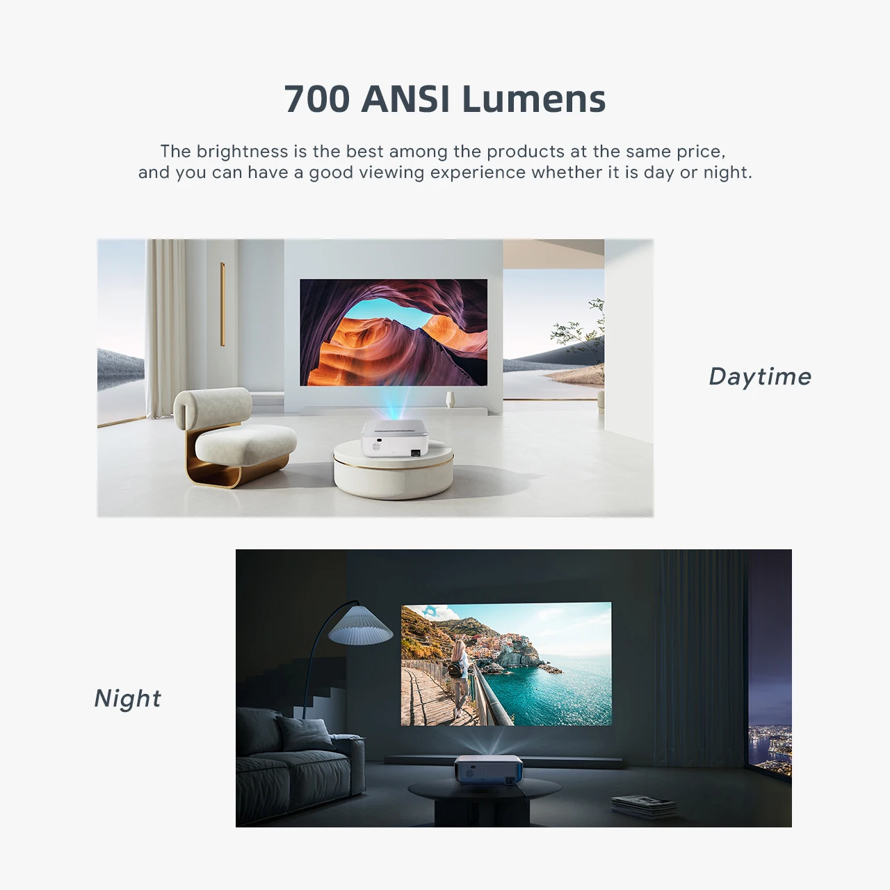 *MECOOL KP1 with a native resolution of 1920x1080P and remarkable 700 ANSI Lumens brightness, provides sharp and detailed images and provides you with an immersive home cinema experience.