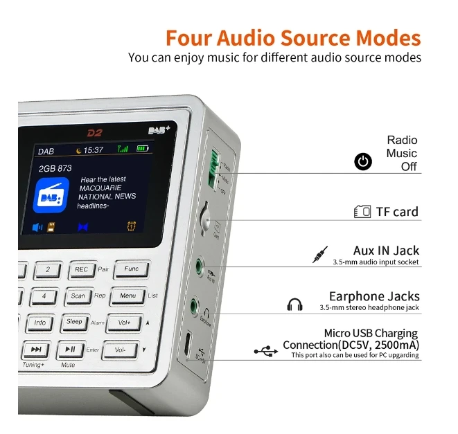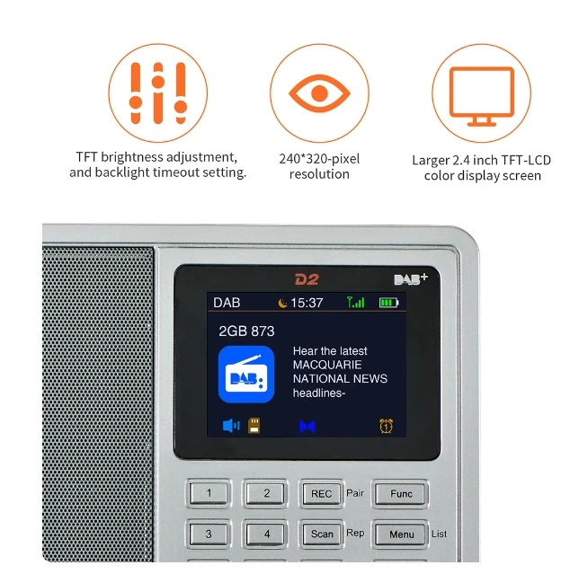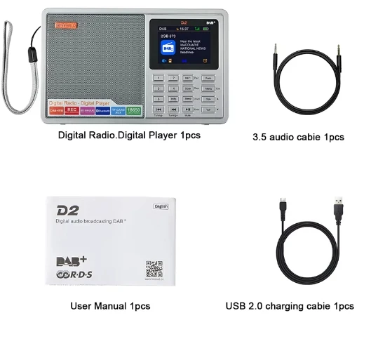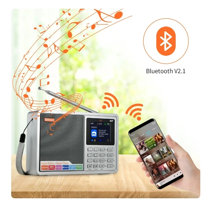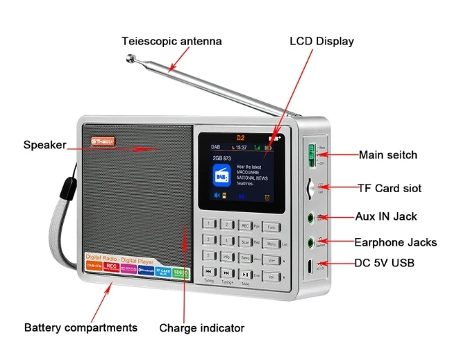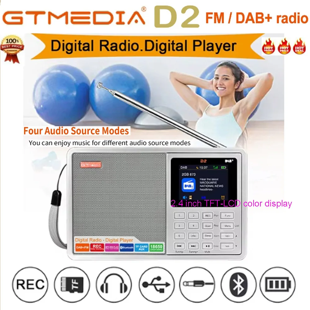[Genuino] Nuevo GTMEDIA D2 FM/DAB Radio Pantalla LCD Tarjeta TF Reproductor digital DAB + FM Programa de grabación Auriculares estéreo Escucha Radio
