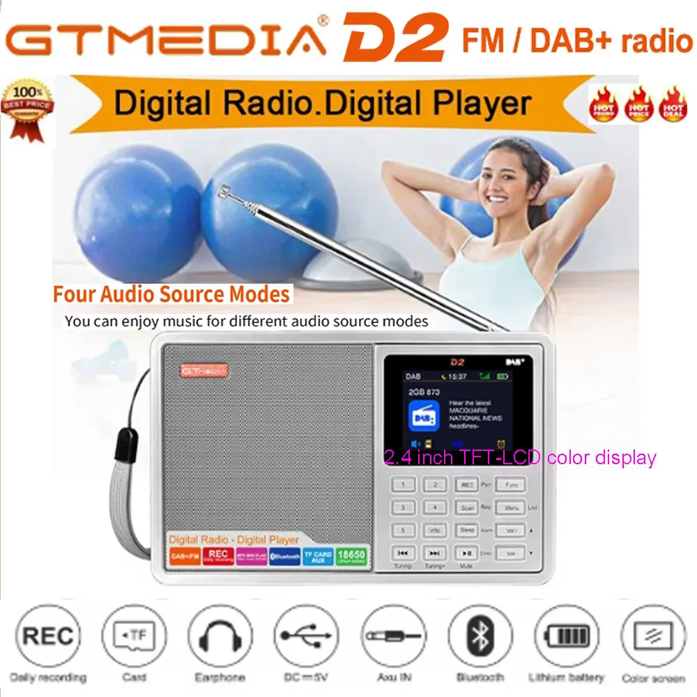Comprar Genuino] nuevo GTMEDIA D2 FM/DAB Radio pantalla LCD tarjeta TF reproductor digital DAB + FM grabación de programa auriculares estéreo escucha Radio