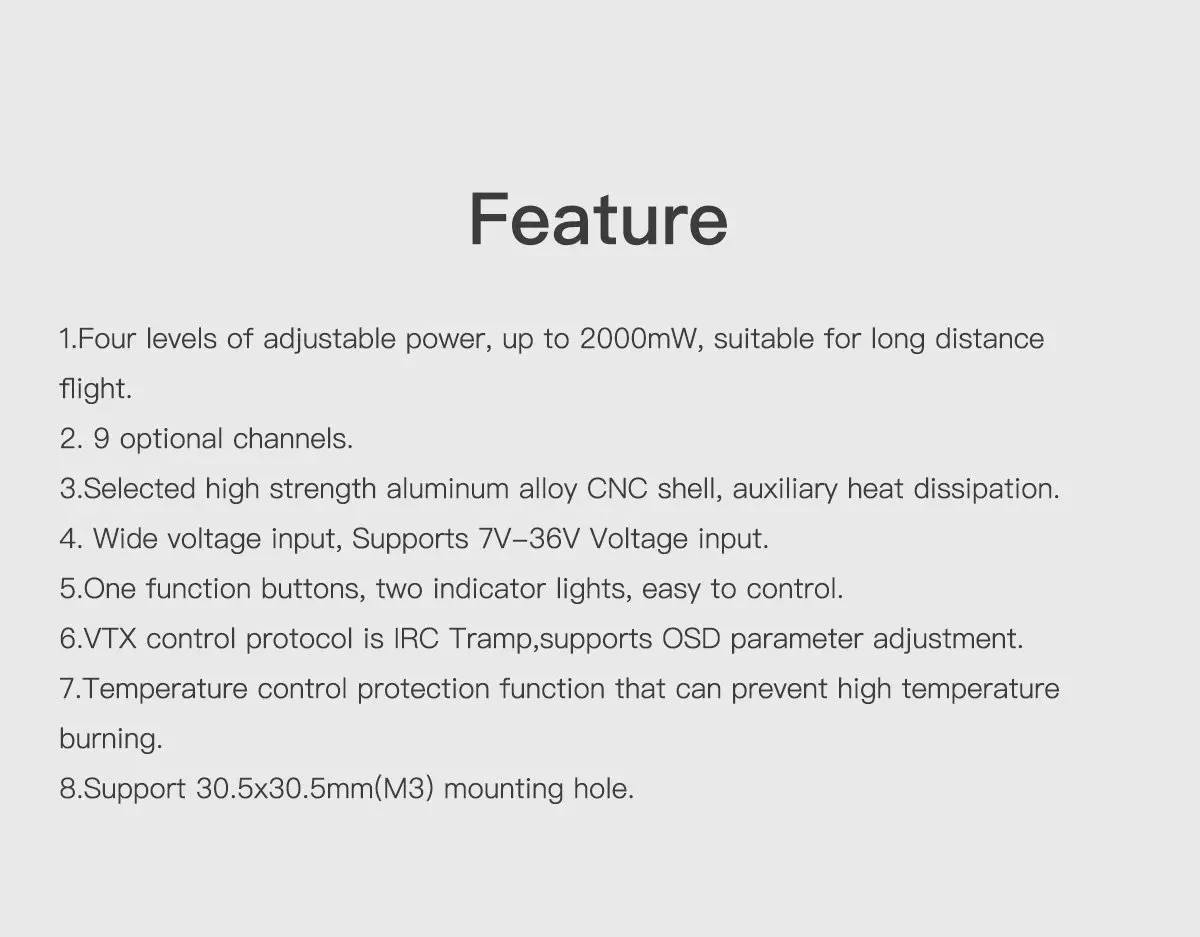Es compatible con el protocolo IRC Tramp y puede utilizar el OSD para ajustar rápidamente los parámetros.