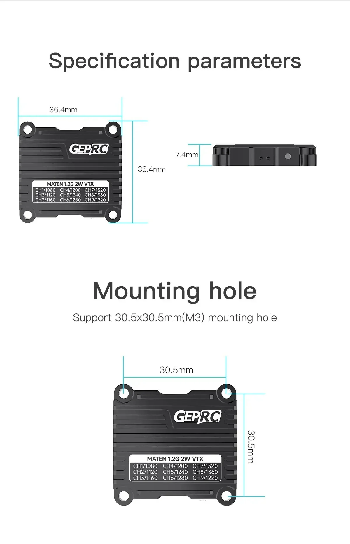 Modelo: GEPRC MATEN 1.2G 2W VTX
