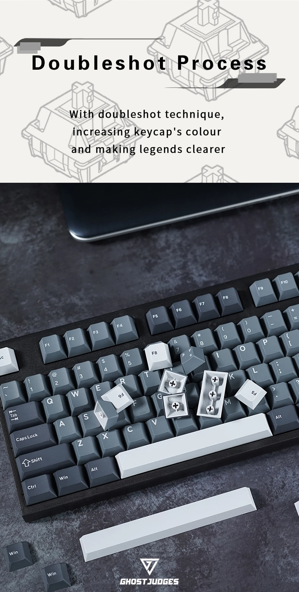 Comprar Ghost judge-teclado GJ Apollo Colorway Cherry PBT Doubleshot para teclado mx stem, 60, 65, 87, 104, gh60, xd64, xd68, bm60, bm65, bm80