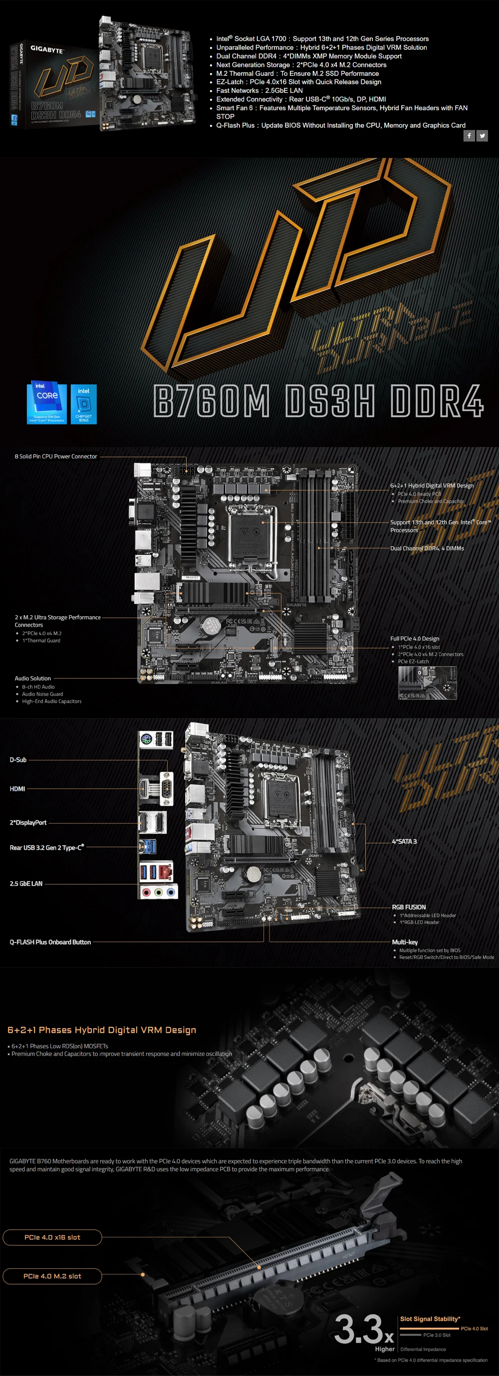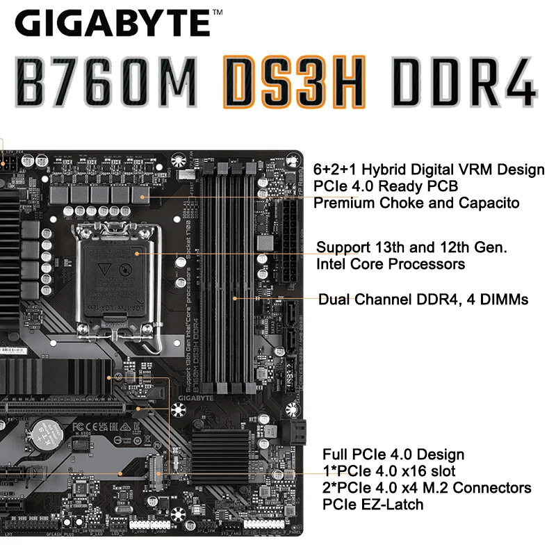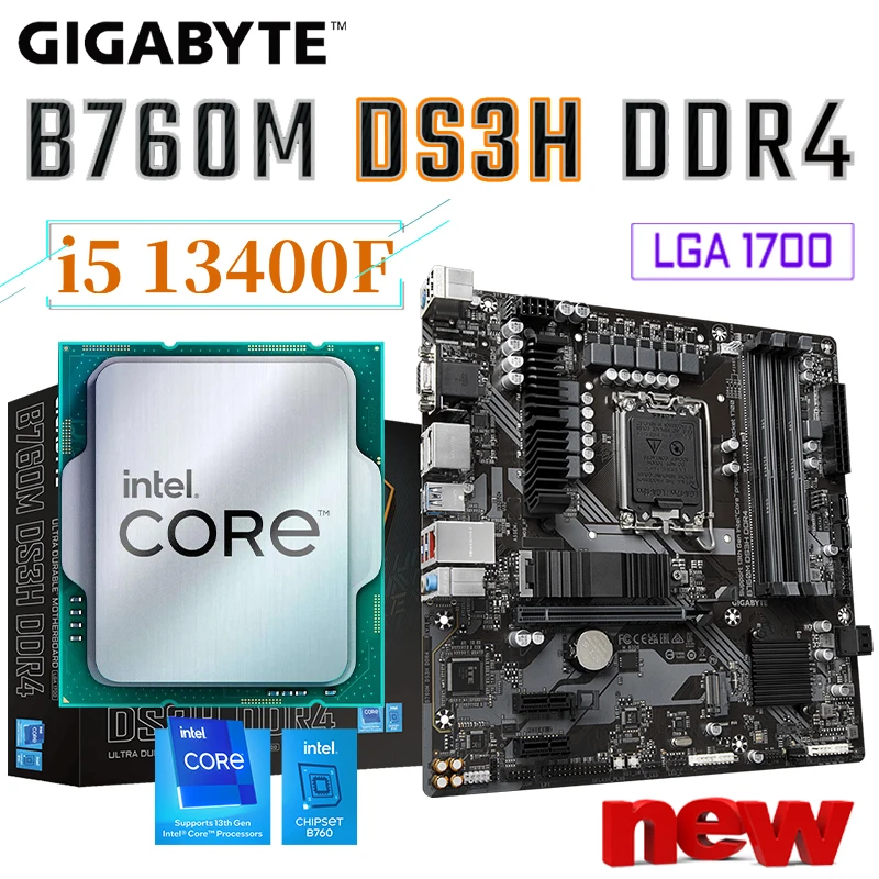 Comprar Gigabyte B760M DS3H DDR4 LGA 1700 placa base + 13th Intel Core i5 13400F CPU Set soporte D4 128GB PCIe 4,0 M.2 Placa base Nueva