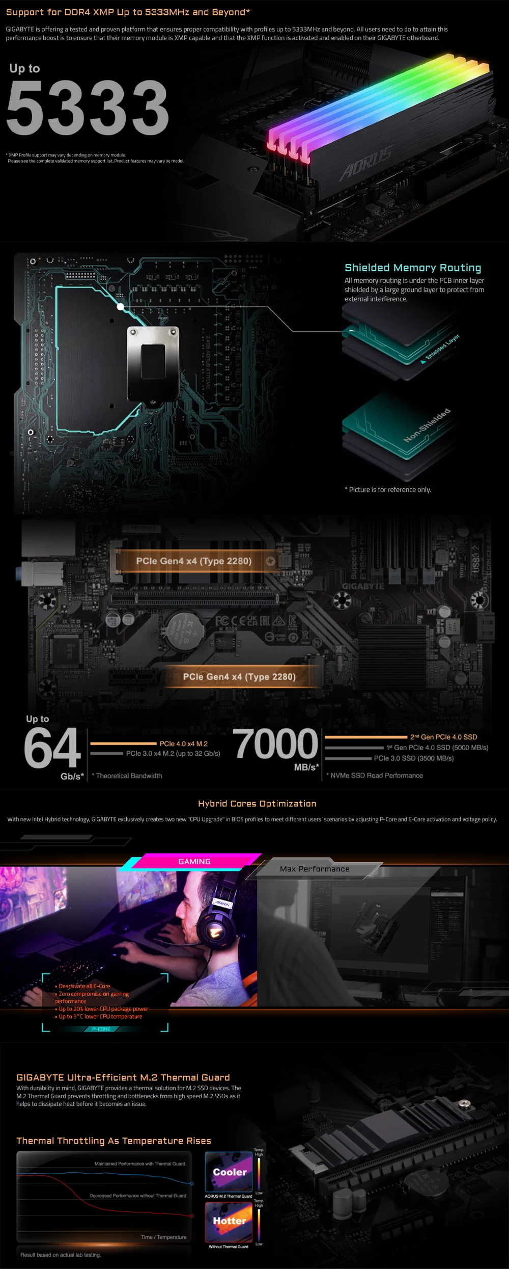 Capacidad máxima de memoria: 128GB; Compatible con DDR4 5333(O.C)/ 5133, C)/ 5000, C)/ 4933, C)/ 4800, C)/ 4700, C)/ 4600, C)/ 4500, C)/ 4400, C)/ 4300, C)/ 4266, C)/ 4133, C)/ 4000, C)/ 3866, C)/ 3800, C)/ 3733, C)/ 3666, C)/ 3600, C)/ 3466, C)/ 3400, C)/ 3333, C)/ 3300, C)/ 3200/ 3000/ 2933/ 2666/ 2400/ 2133 módulos de memoria MT/s