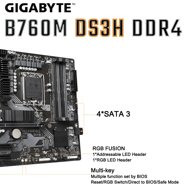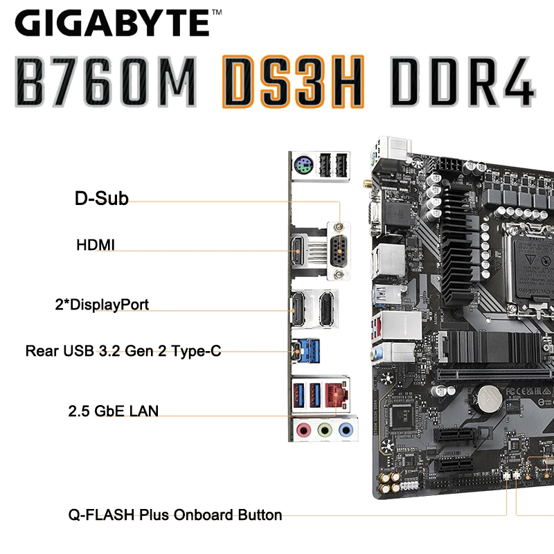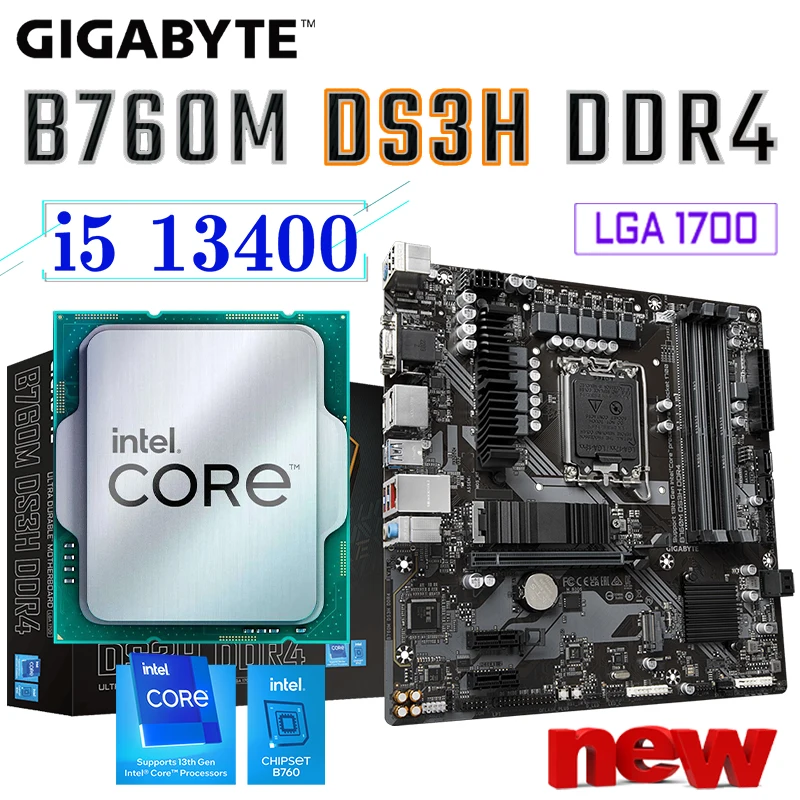 Comprar Gigabyte B760M DS3H DDR4 LGA 1700 placa base + Intel Core 13th i5 13400 soporte D4 128GB 5333(O.C.) PCIe 4,0 M.2 Placa base Nueva