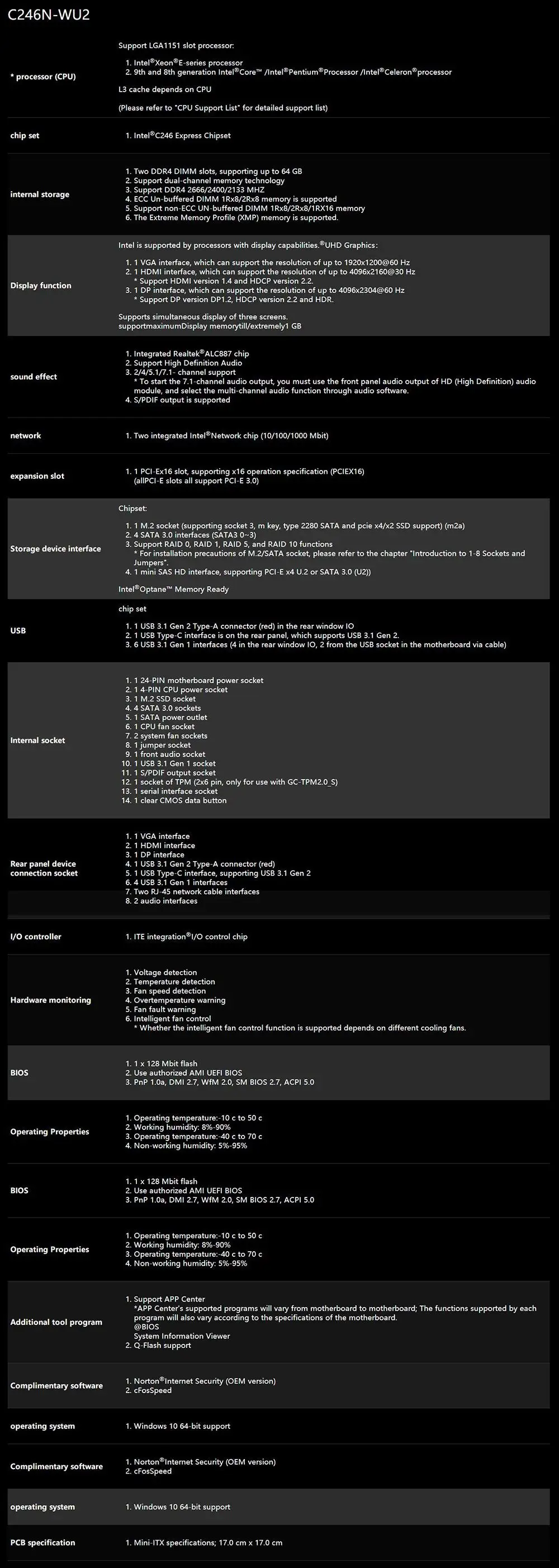 Comprar Para Gigabyte C246 LGA 1151 DDR4 64GB PCI-E 3,0 Mini-ITX estación de trabajo placa base PC C246N-WU2